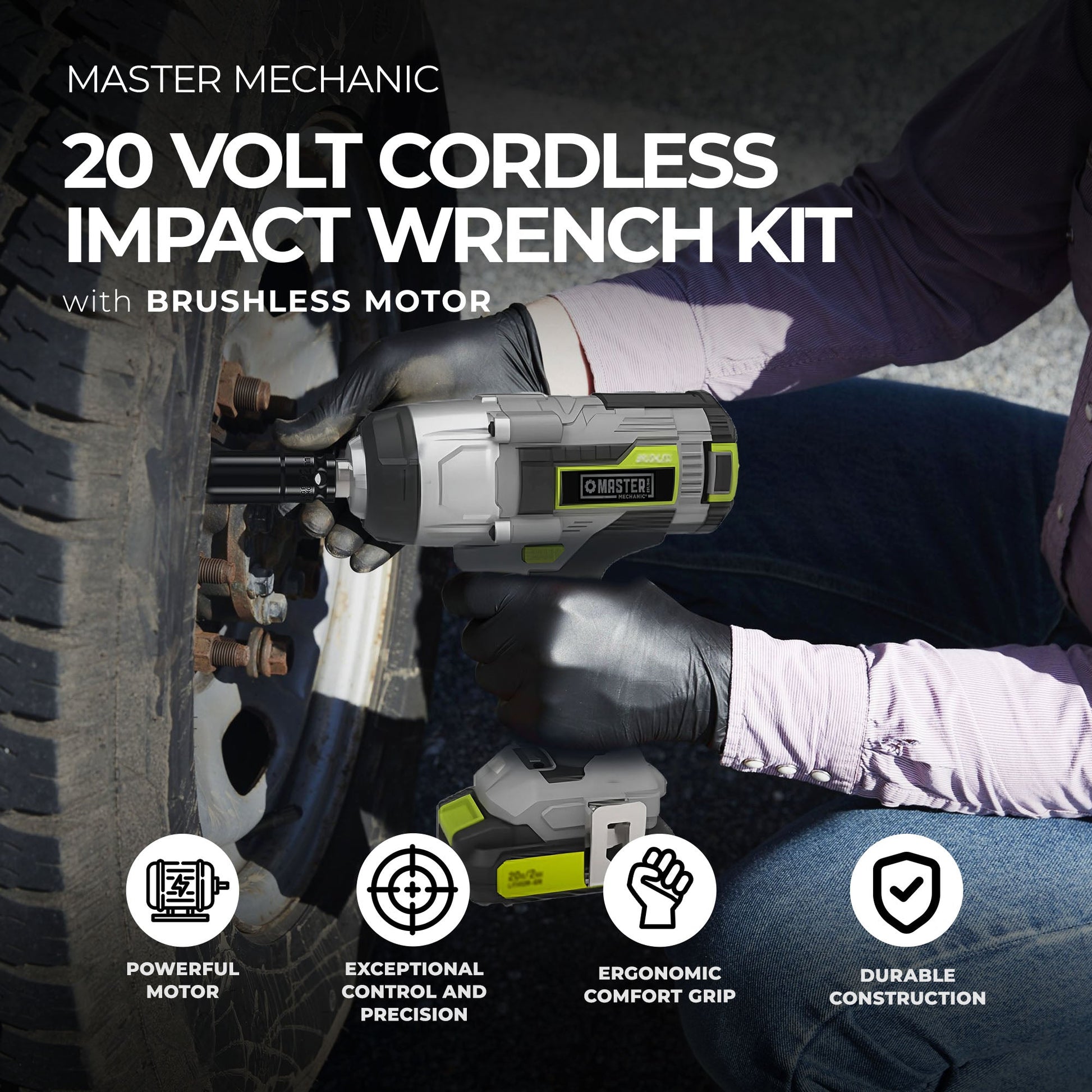 Transform your DIY projects and professional tasks with the Master Mechanic 20 Volt Cordless Impact Wrench Kit.
