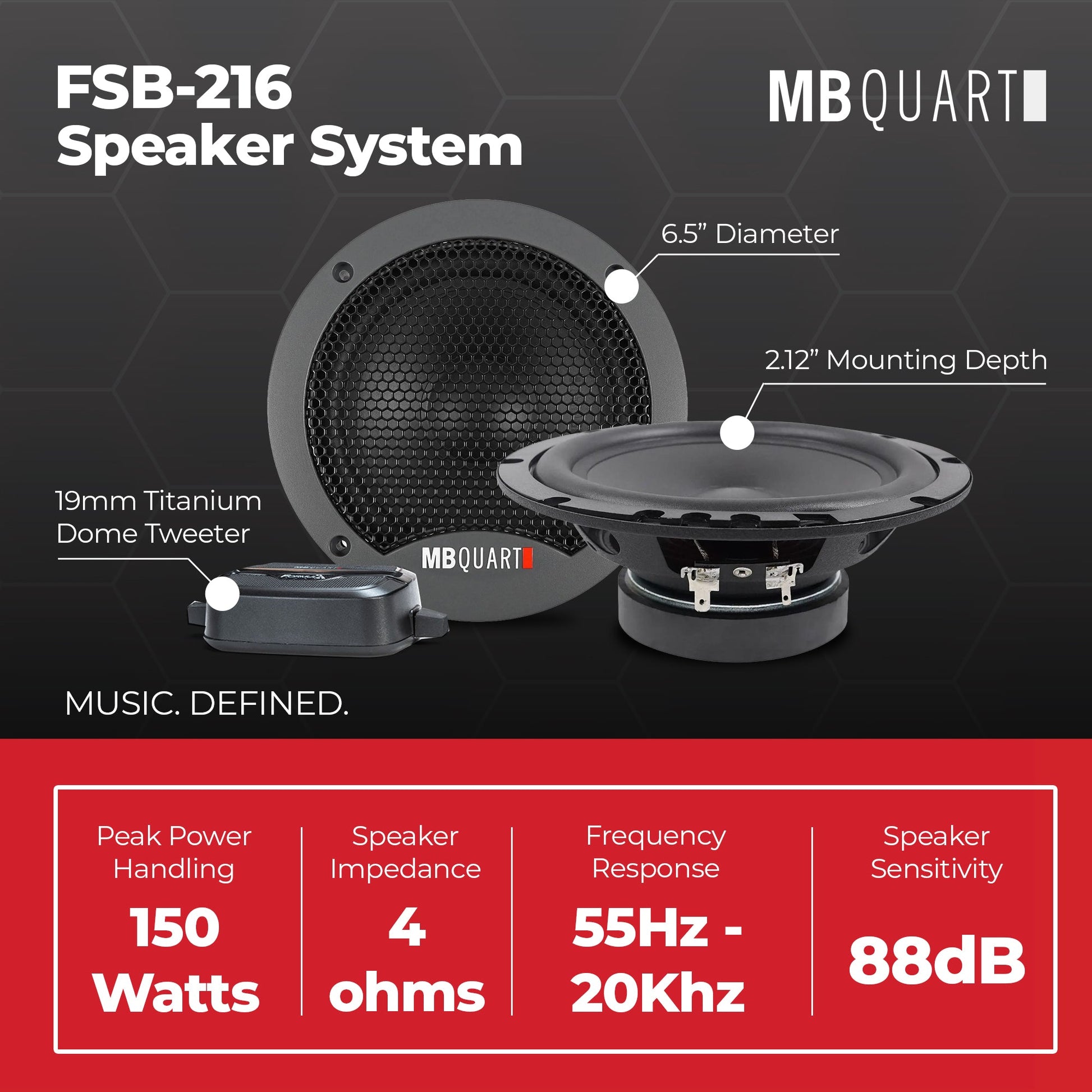 MB Quart FSB-216 6.5 Inch 2-Way Car Component Speakers, 150W Peak Power, Black