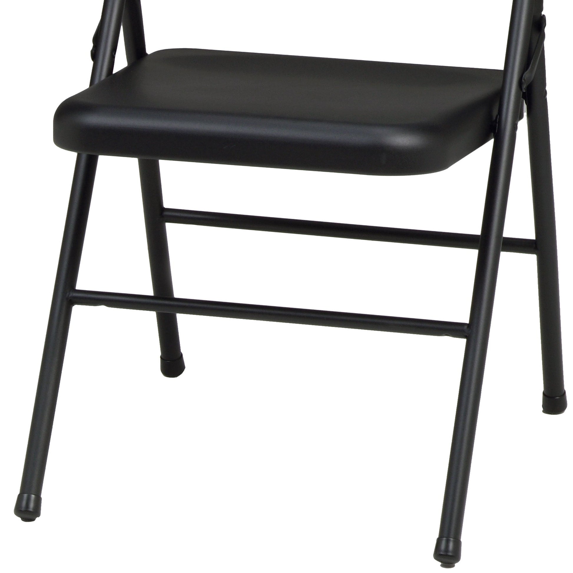 Enjoy comfortably seating for yourself and your guests with these trend-setting chairs. Offering a large 16 by 16-inch seat and fully contoured supportive backrest, these folding chairs provide style with a black lace finish. So go ahead, and make your guest list a bit longer. Whether it's drop-in friends or a planned party, you'll have an easy setup, plenty of room, and a quick take-down with a simple wipe-clean surface.