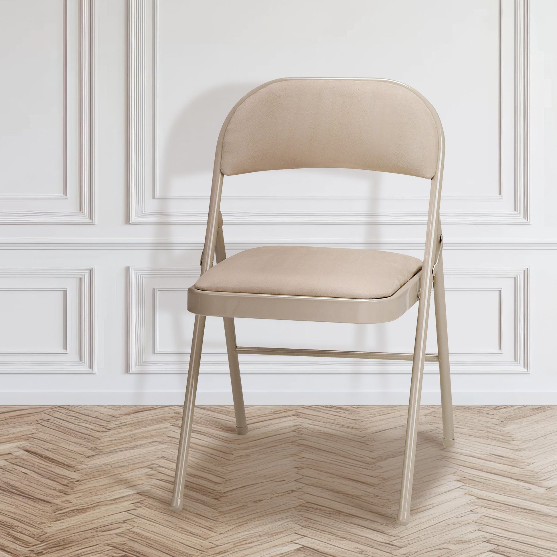 MECO Sudden Comfort Deluxe Sand Fabric Padded Folding Chair, Buff (Set of 4)