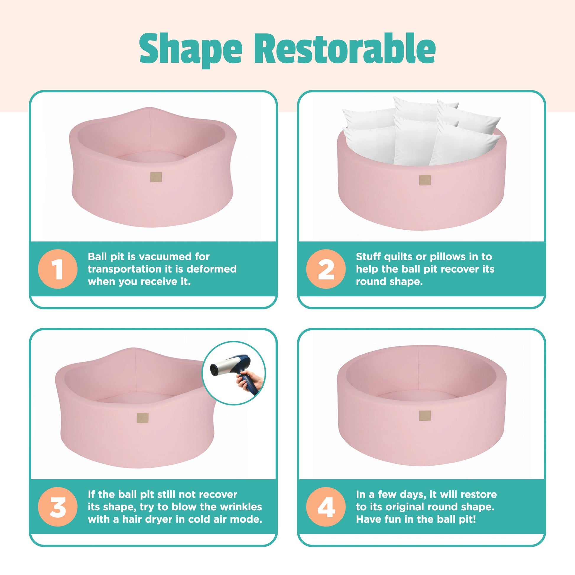 MeowBaby Round 35 x 11.5 Inch Baby Foam Ball Pit w/ 200 Balls, Light Pink/Pearl