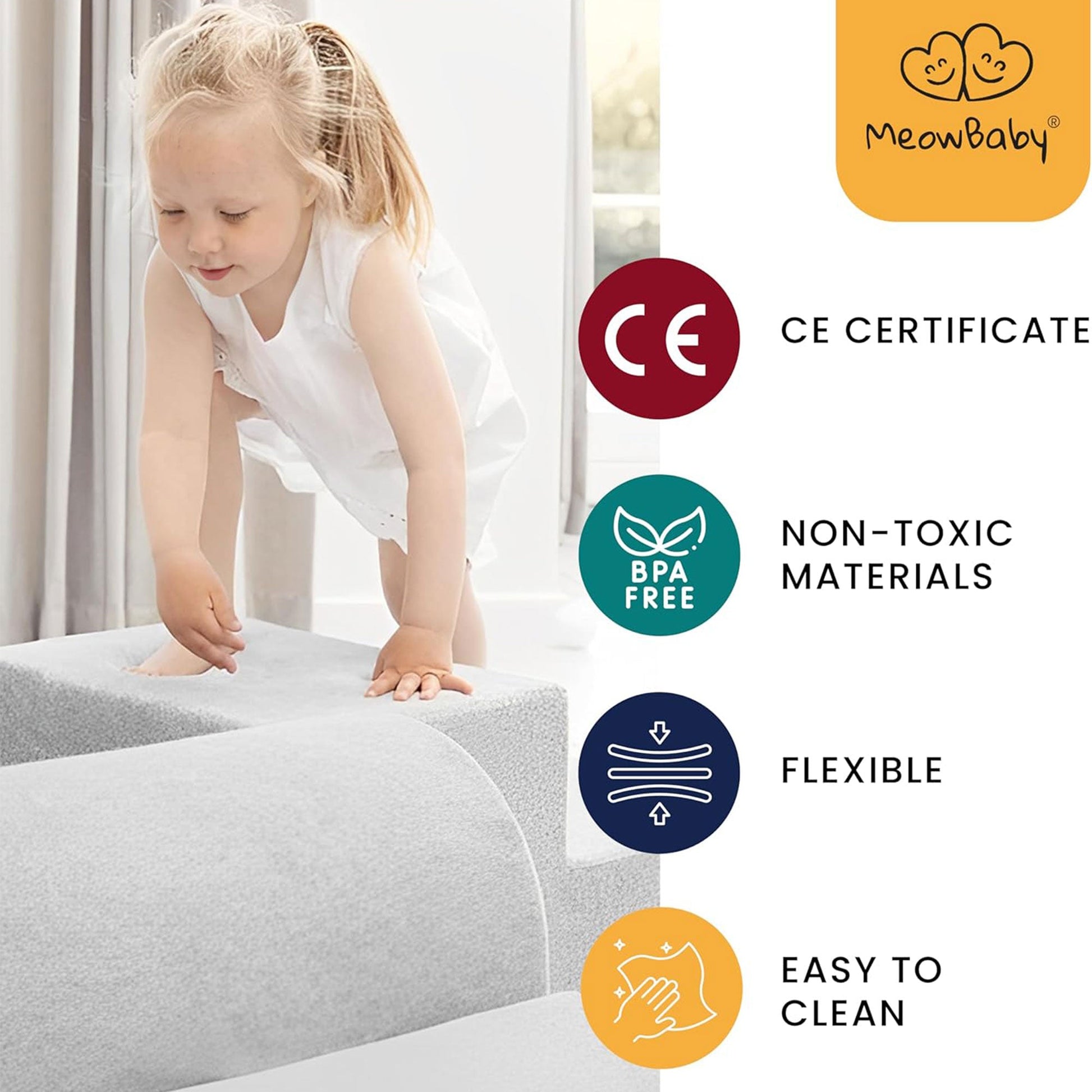 - Soft, thick foam climbing blocks promote sensory and motor development in a comfy and secure environment