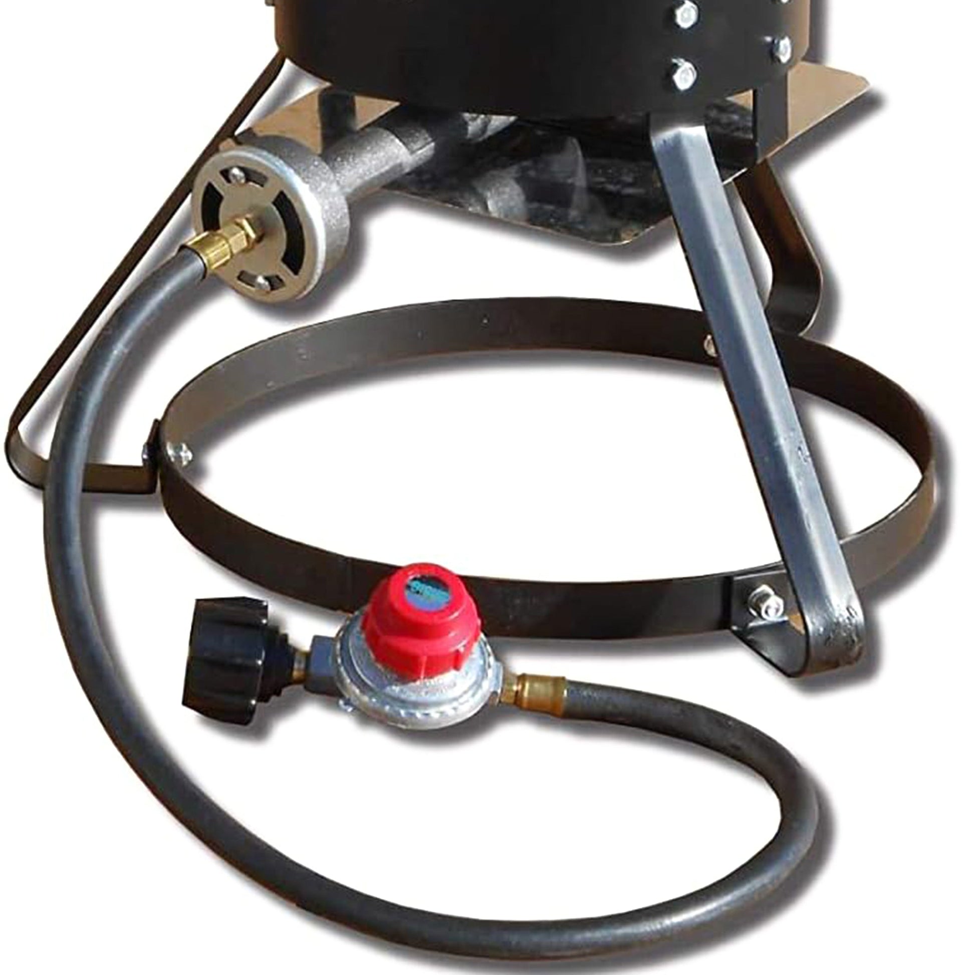 The included 10-quart aluminum fry pan and basket provide ample space for frying your favorite foods while conserving oil. Equipped with a deep-fry thermometer and an adjustable regulator, this outdoor cooker gives you have precise control over cooking temperatures, ensuring excellent results every time.