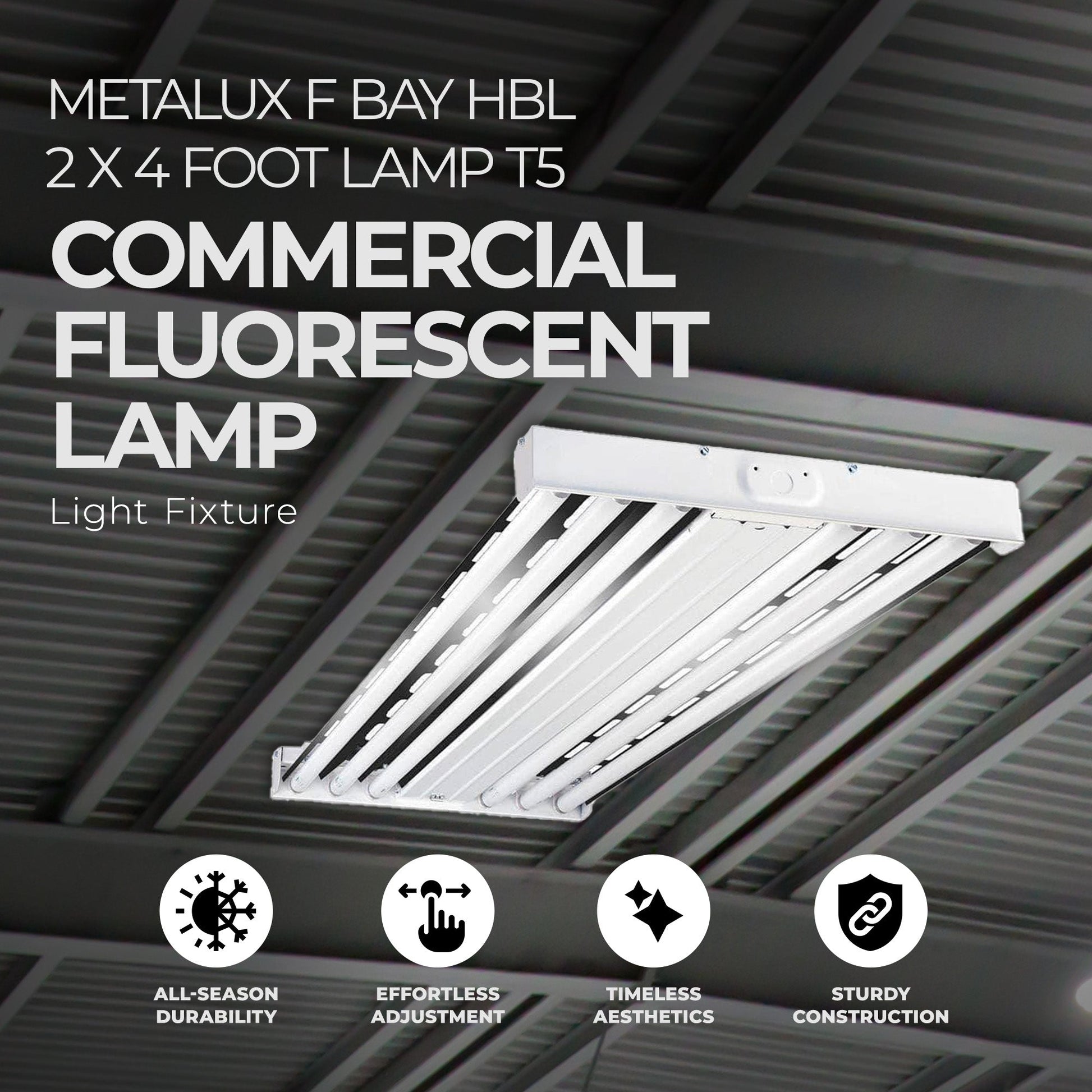 Upgrade your commercial lighting setup with the Metalux F-Bay HBL T5 Commercial Fluorescent Lamp Light Fixture.