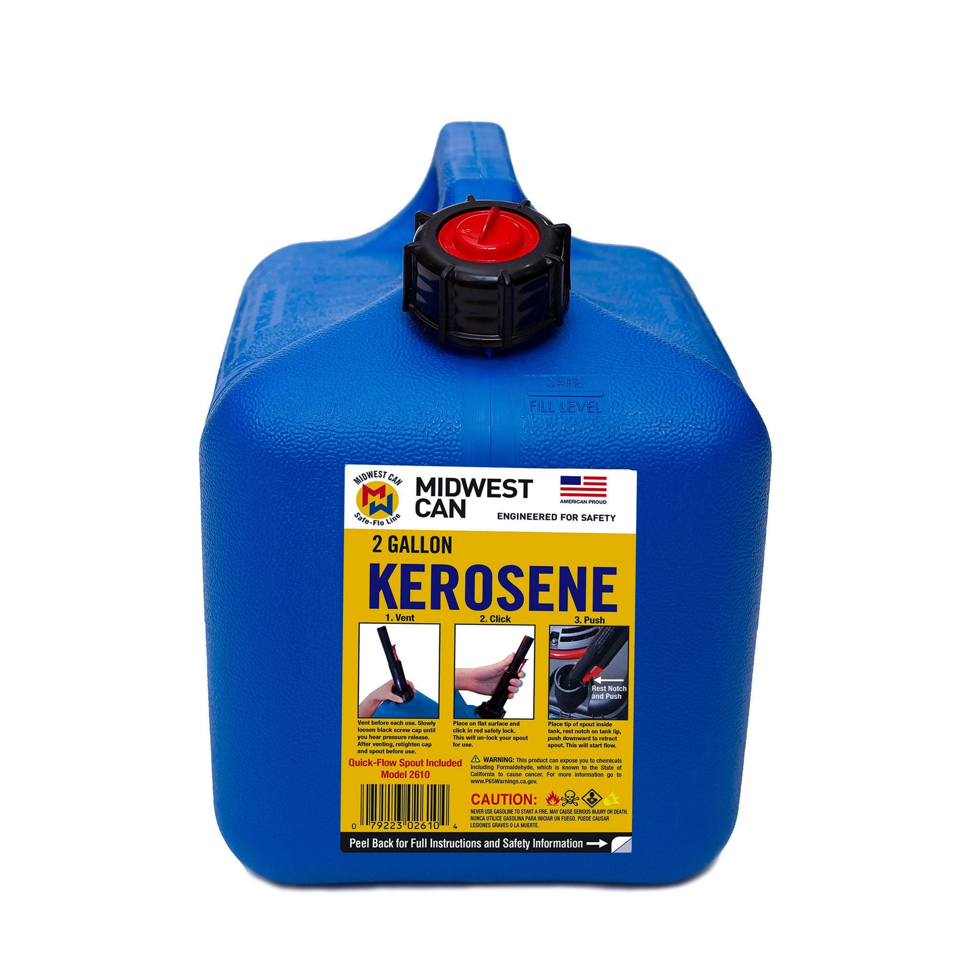 - Easy-to-use 2-gallon kerosene can