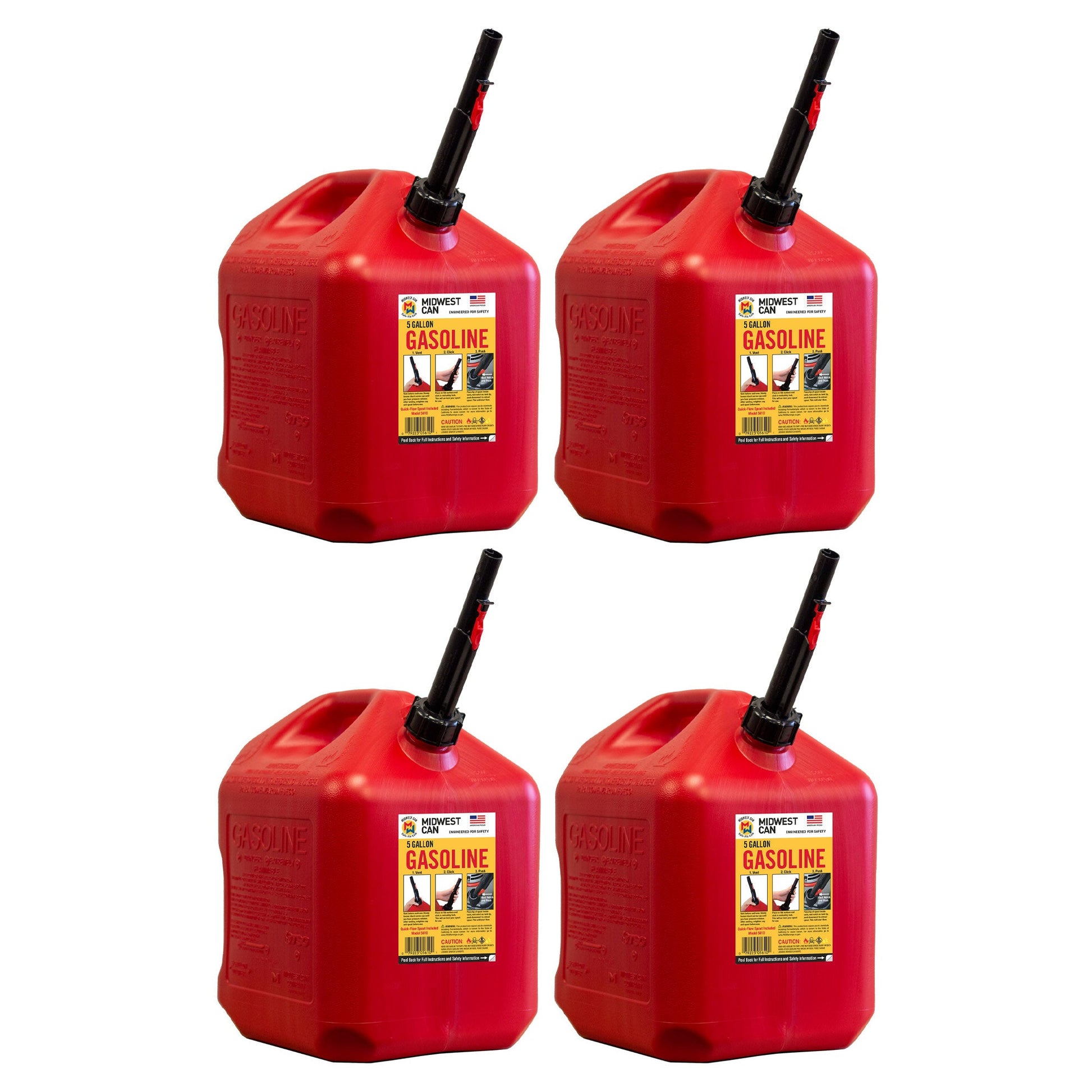 Midwest Can Company 5610 5 Gallon Gas Can Fuel Container Jugs w/ Spout (4 Pack)