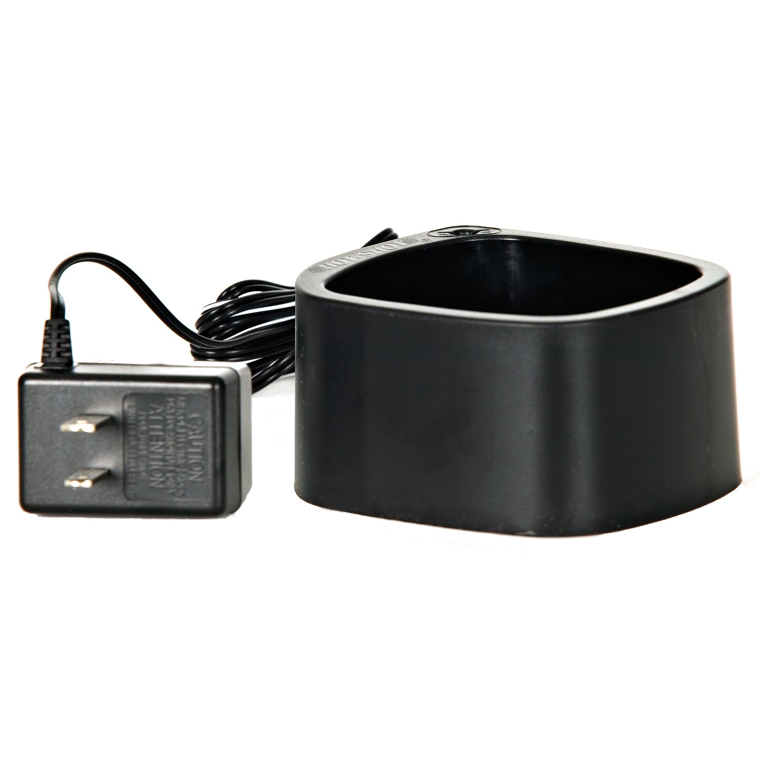 - 4-piece set includes rechargeable battery pack, 110-volt adapter, 12-volt adapter, and charger base
