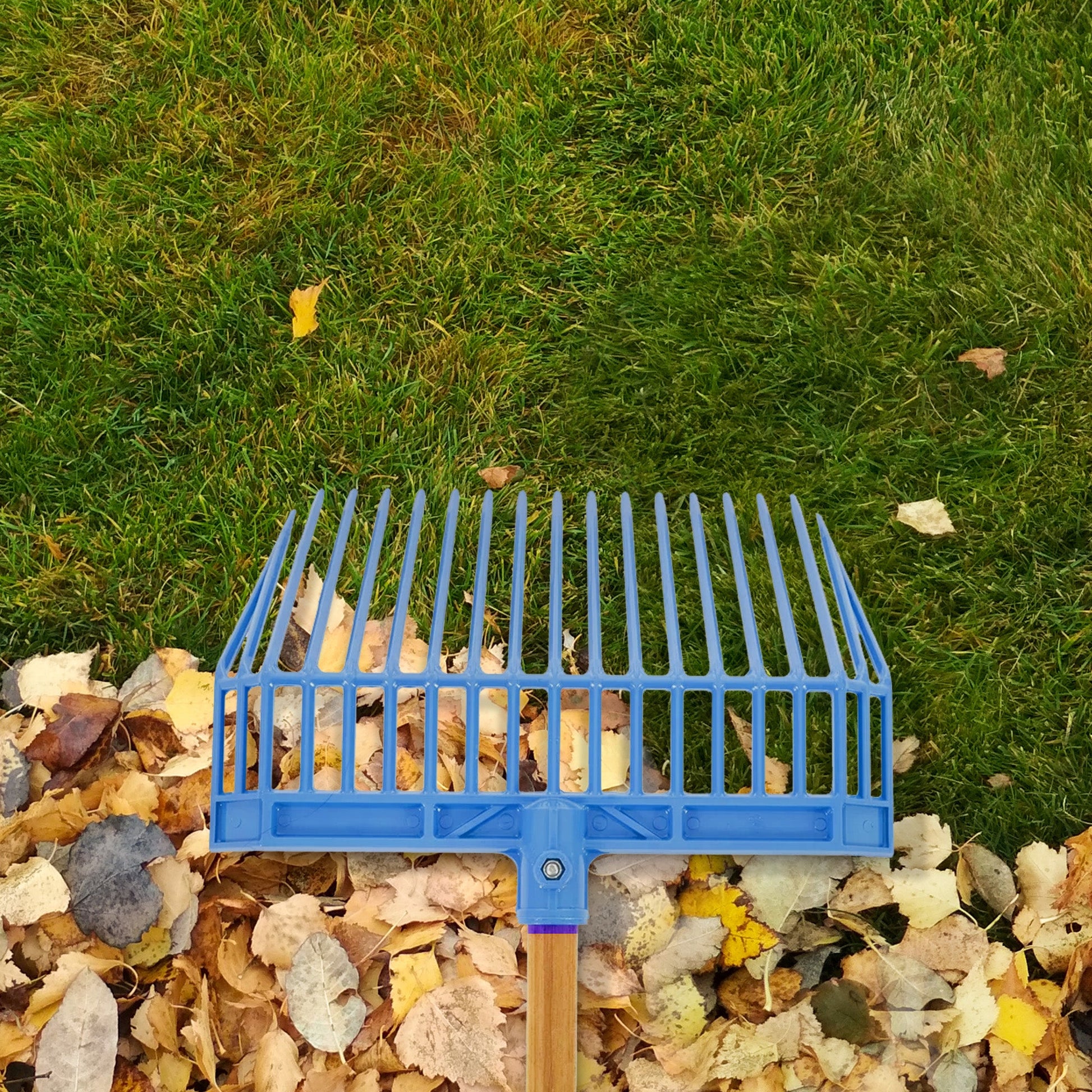 This pack of garden spades includes 3 matching lawn rakes. Each pitch fork features a handle made from thick hardwood with a nylon locknut to secure it to the fork-head. At 52 inches long, each handle provides a comfortable grip as well as plenty of leverage to tackle any-sized job. Durable, flexible polycarbonate plastic molds the manure forks' heads, specially designed to more easily scoop up and deposit compost, manure, straw mulch, and other gardening materials. Each head has a different color, providing a little character to the set and making it easy to tell your tools apart when choring around the property with the rest of your family. There's a blue, a green, and a pink bedding fork included.