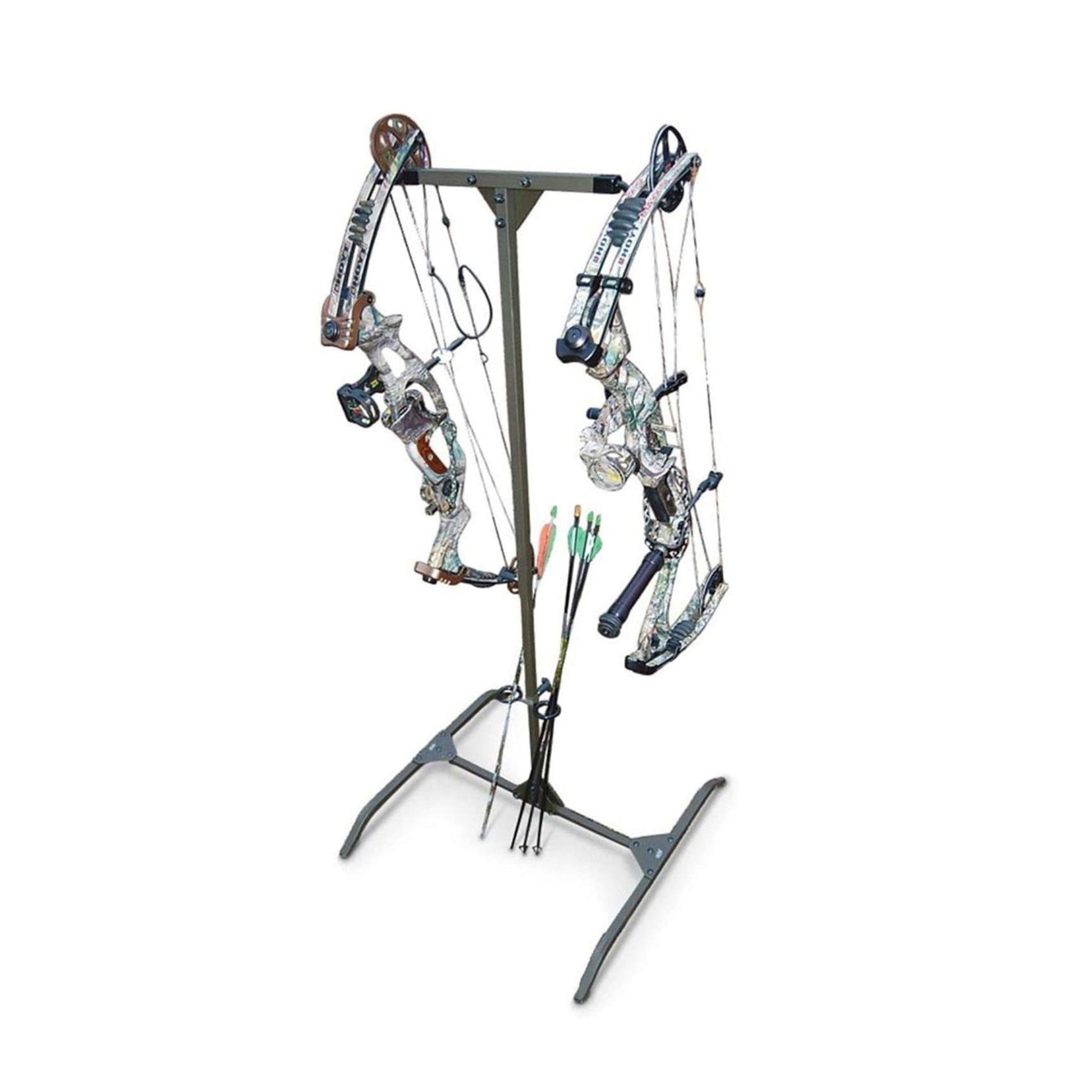 The HME storage hanger can hold up to (2) bows on each side unit and includes (2) archers' arrow caddies that easily hold up to 6 arrows each.