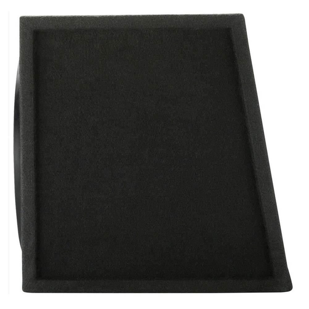 - MTX enclosure features solid MDF construction and thick black carpet; Dimensions (H x W x D1 x D2): 14 x 29.69 x 13.5 x 11.13 inches