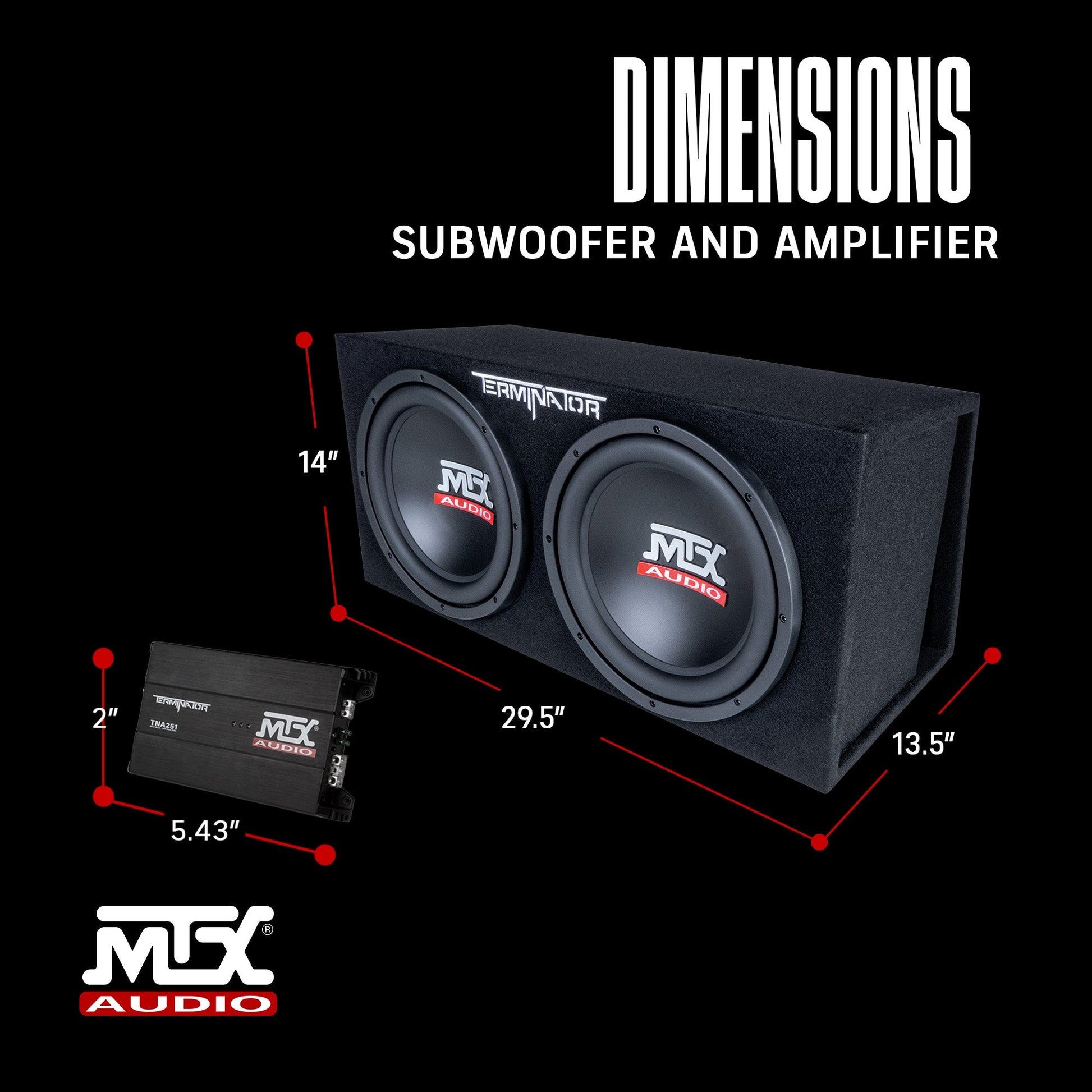 The MTX TNP212DV 12 Inch 2000 Watt Dual Loaded Subwoofer Box Enclosure delivers unforgettable bass with the perfect combination of 12 inch subs, monoblock amp, and a box to boot.