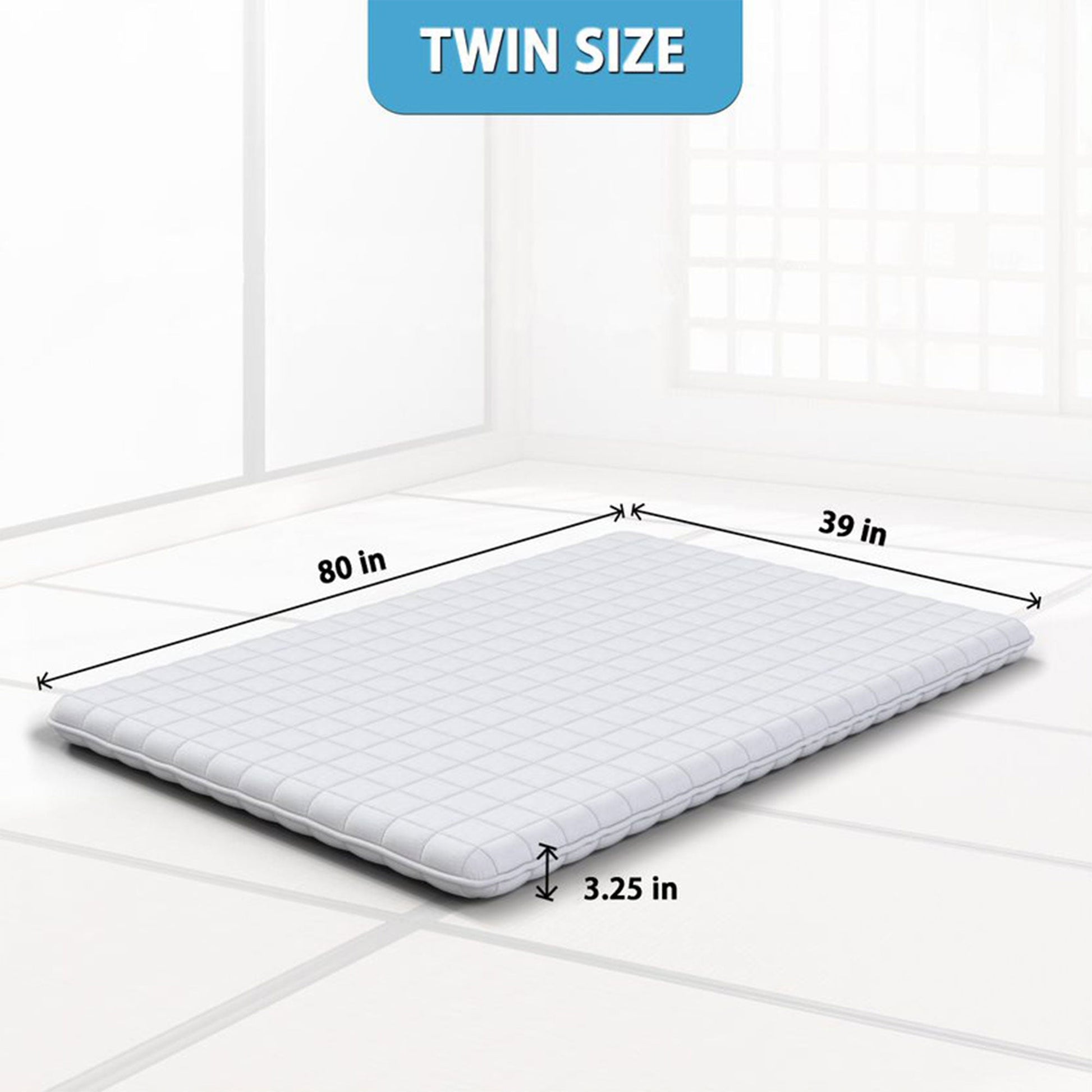 Designed for the optimal balance between comfort and support, this futon mattress delivers sufficient cushioning around pressure points and maintains your spinal alignment using the floor for solid support. This medium-firm floor bed provides a minimalist approach to decorating any bedroom yet boasts adequate sleeping space with its twin mattress measuring 80 inches by 39 inches. Appropriately sized at 3.25 inches thick, the sleeping mat elevates your body perfectly off the ground for a deeply comfortable rest.