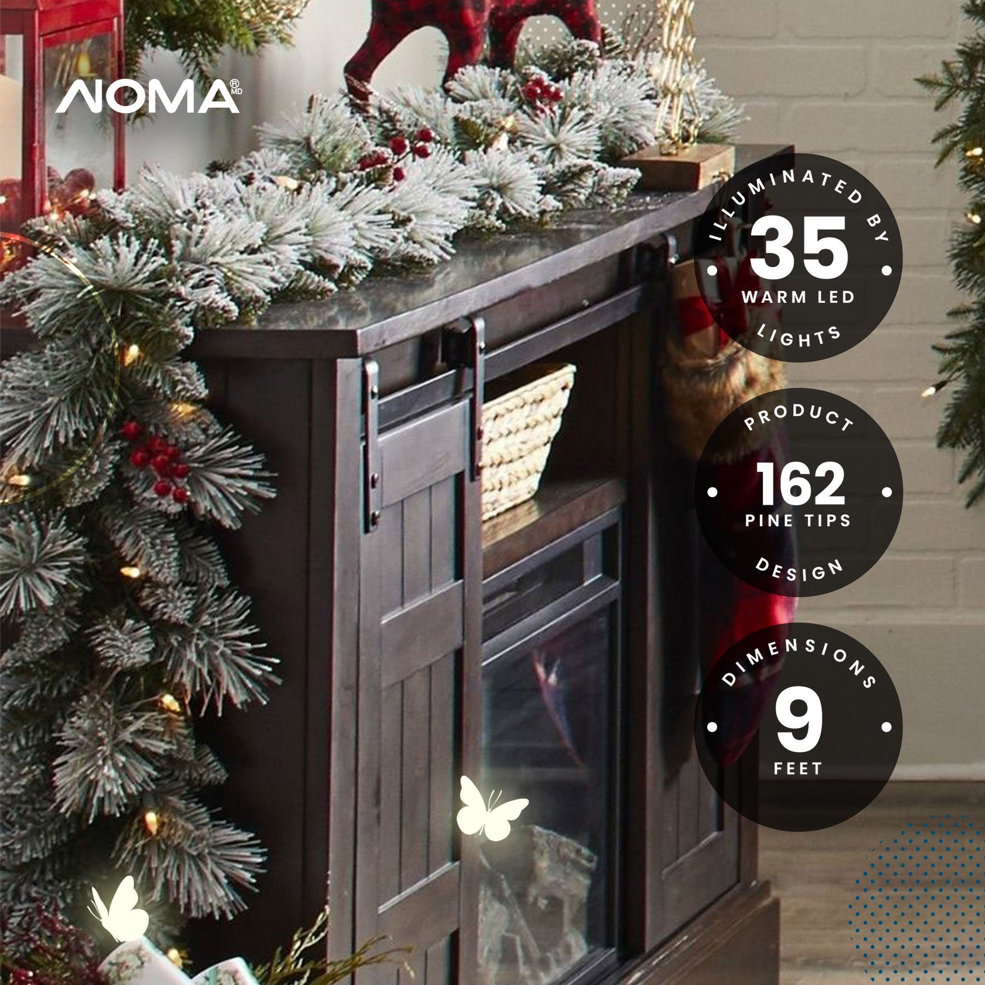 Whether you drape them along your mantel, wind them around your staircase, or use them to frame doorways and windows, the possibilities are endless. Let your creativity shine as you personalize your holiday decor. With its easy-to-use battery-operated design, these artificial Christmas garlands are easy to hang and display indoors and outdoors. Enjoy the holiday cheer with the 2 packs of Snow Dusted Berry LED Artificial Christmas Garland from NOMA.