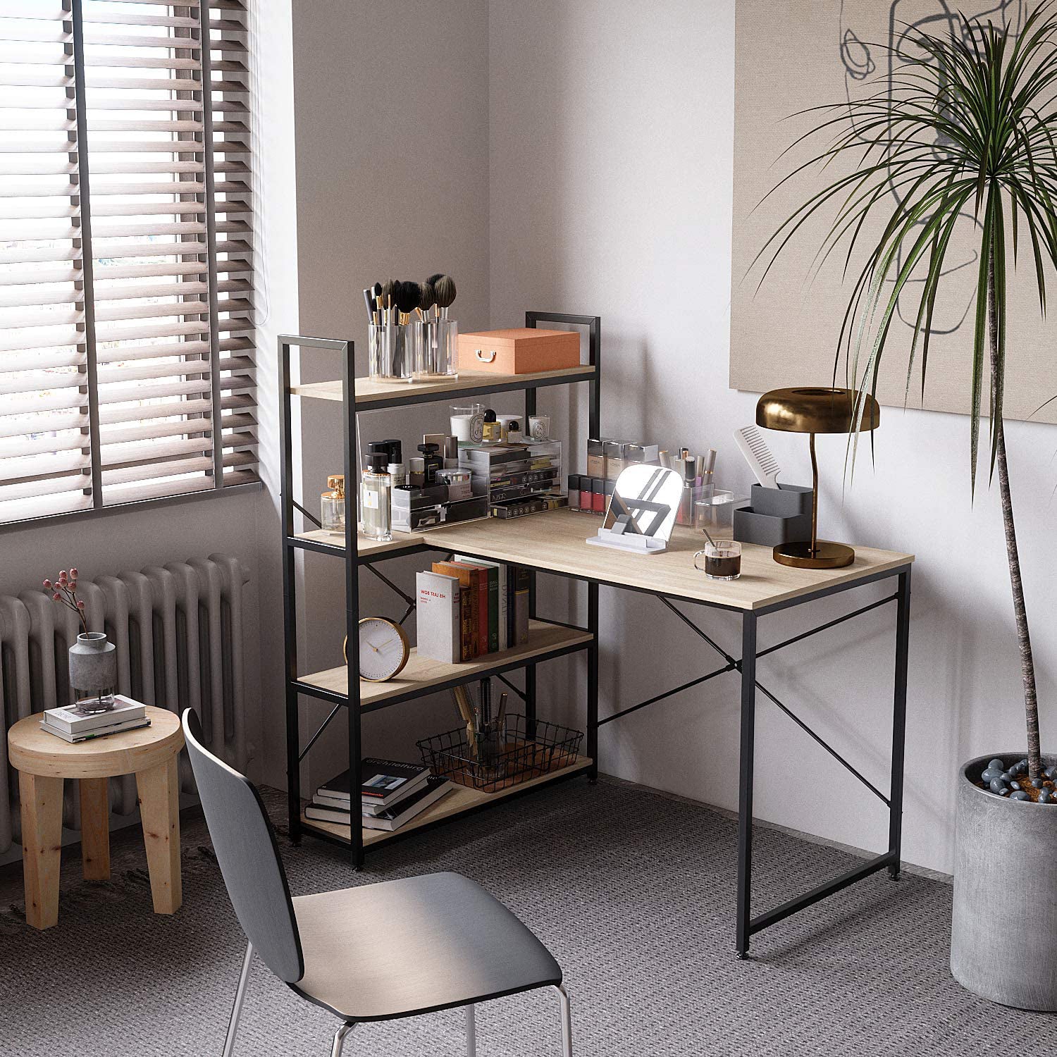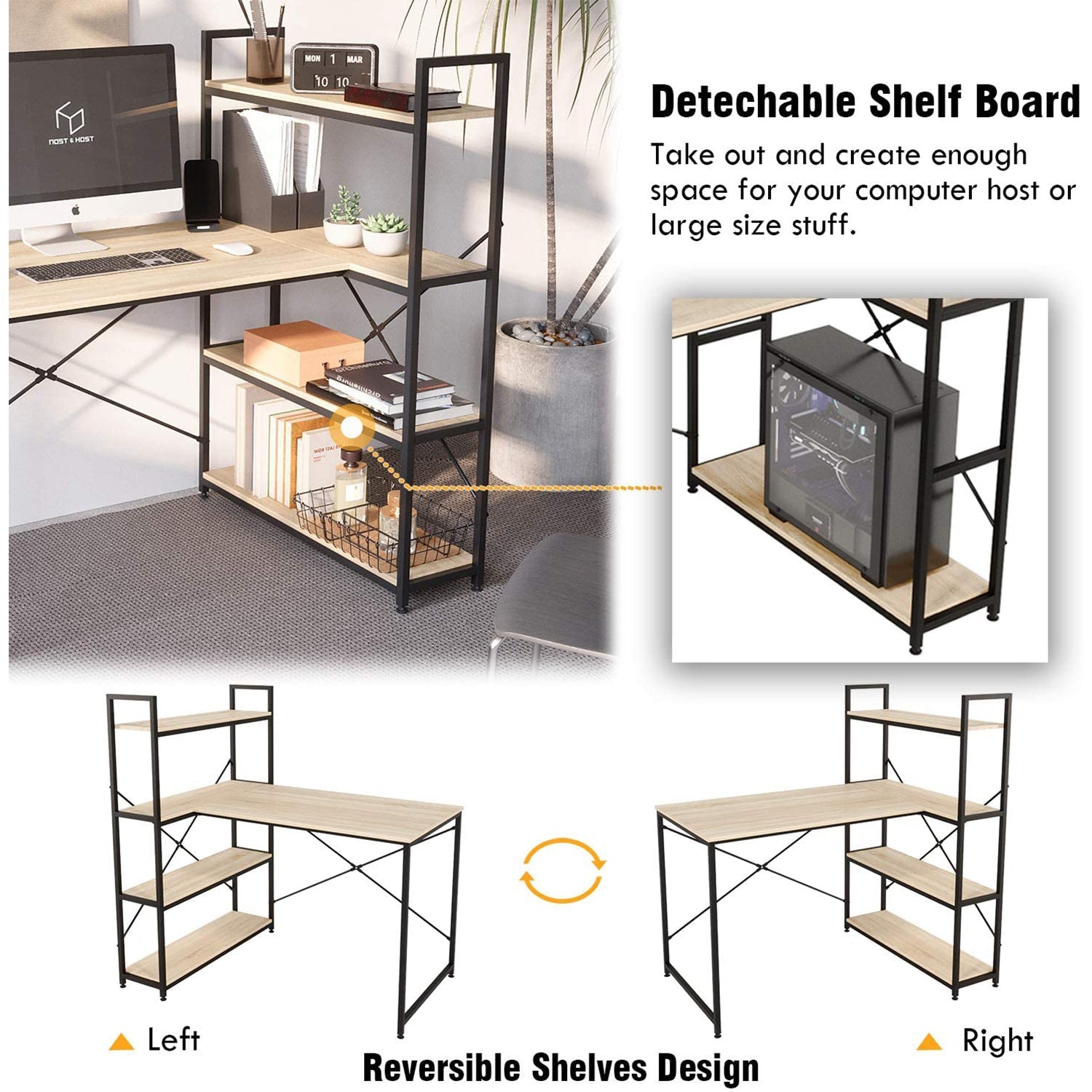 Nost & Host L Shaped Contemporary Home Office Computer Desk with Shelves, Oak