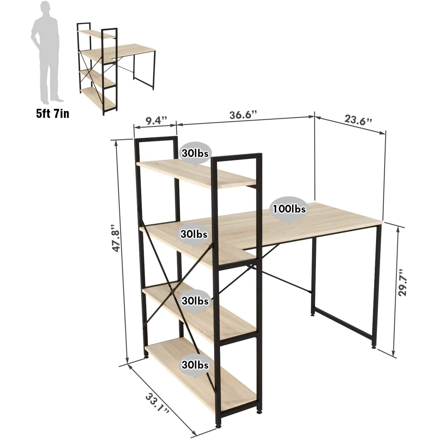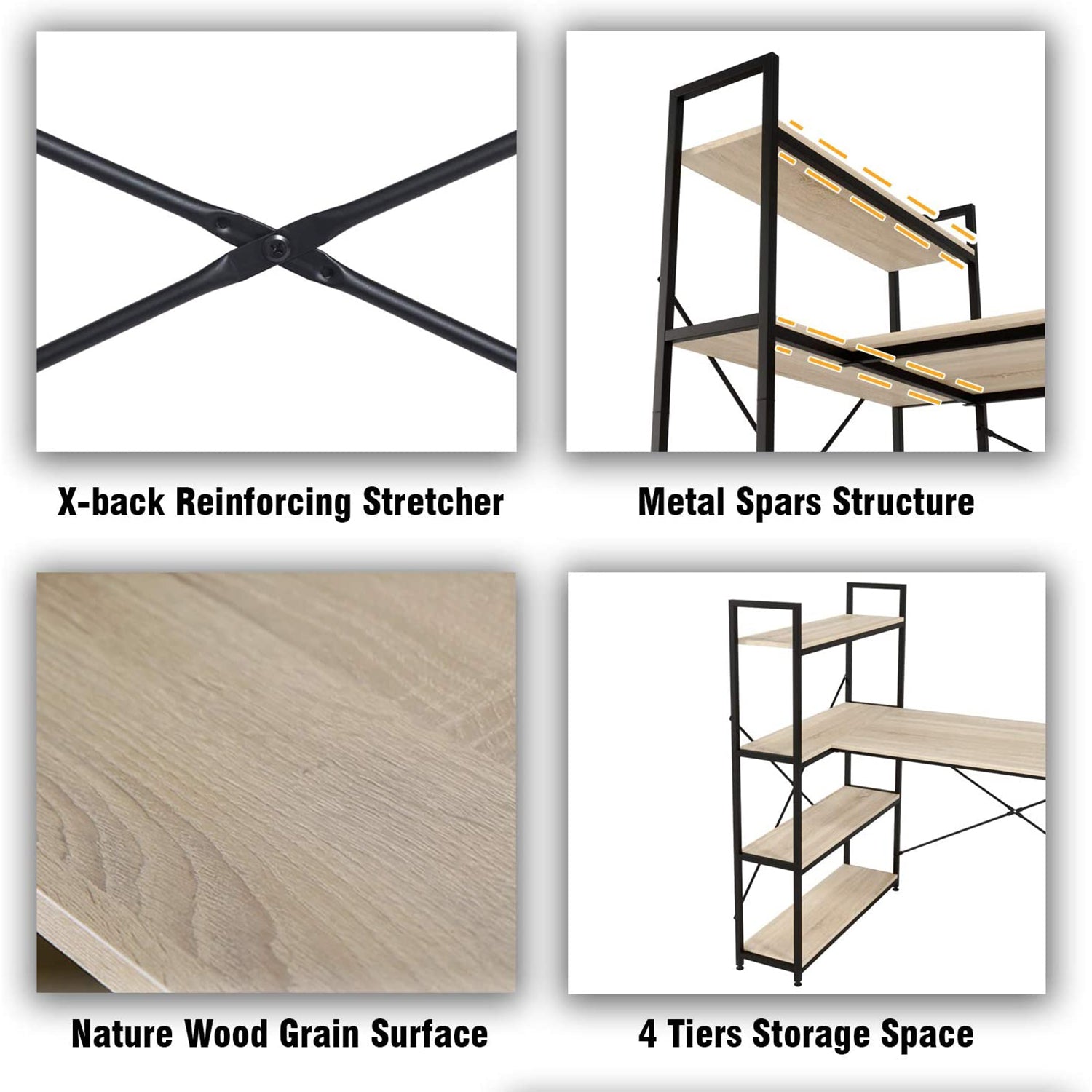 - Corner desk offers ample space with 4-tier open shelving to help organize books and files