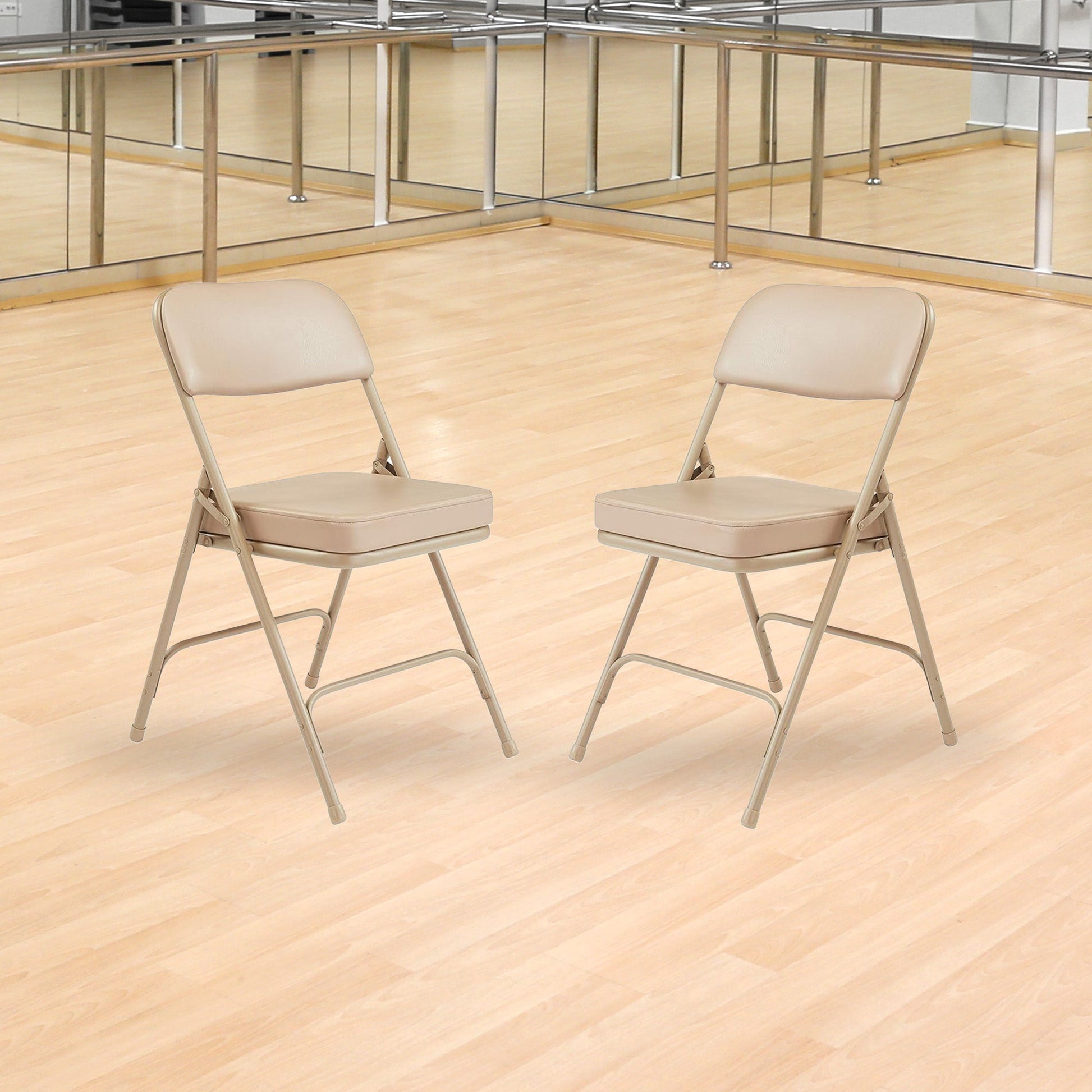 NPS 3200 Series 2" Cusion Vinyl Upholstered Office Folding Chair, Beige, 2 Pack