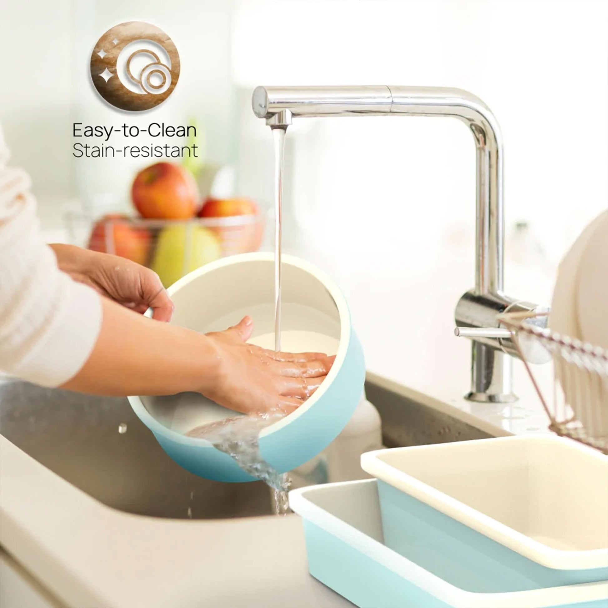- Easy-to-clean ceramic baking set is dishwasher safe; Hand-wash recommended to prolong the life of each piece