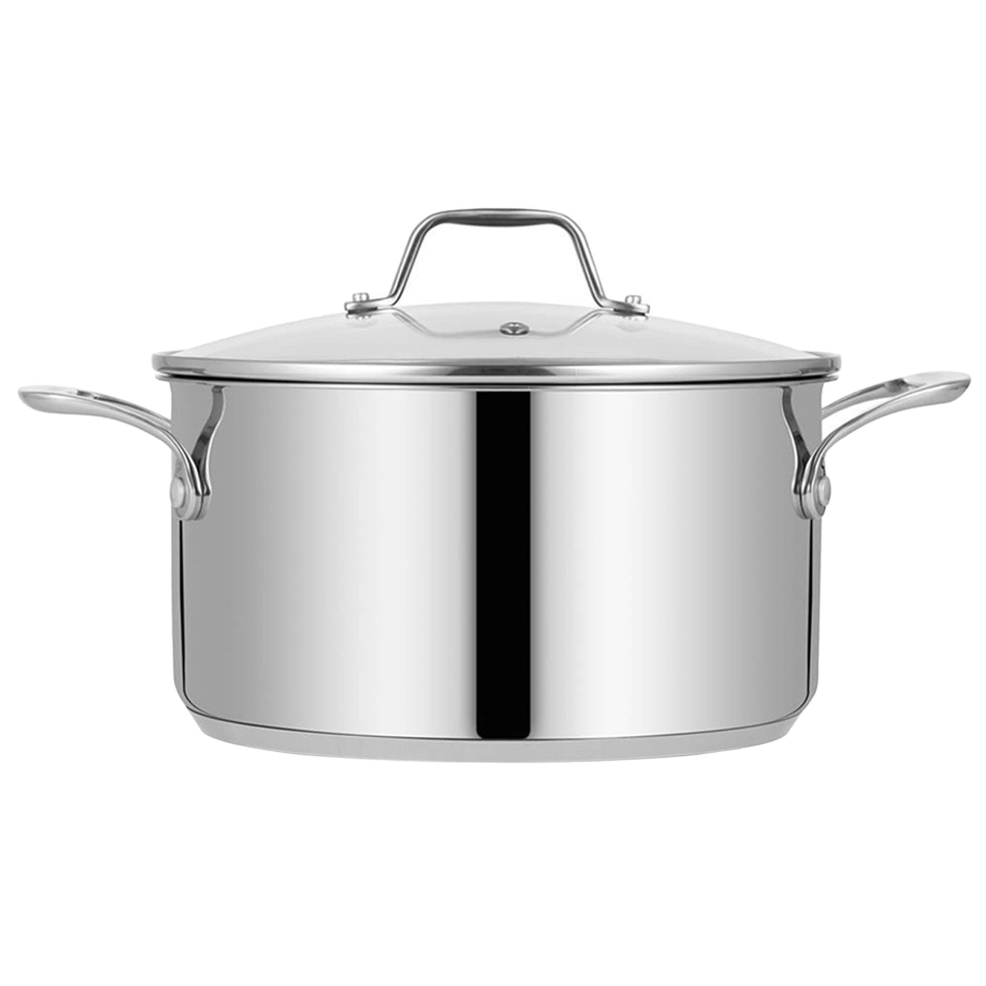 Prepare your favorite soup, stew, or stock with the NutriChef 8-Quart Stainless Steel Stock Pot 2 Pack. These classic stockpots have a sleek, stainless steel design and a clear, tempered glass lid. Ergonomic steel handles make it easy to transport the stockpot from the cabinet to the stovetop - just make sure you have a towel or heat pad if the pot is warm.