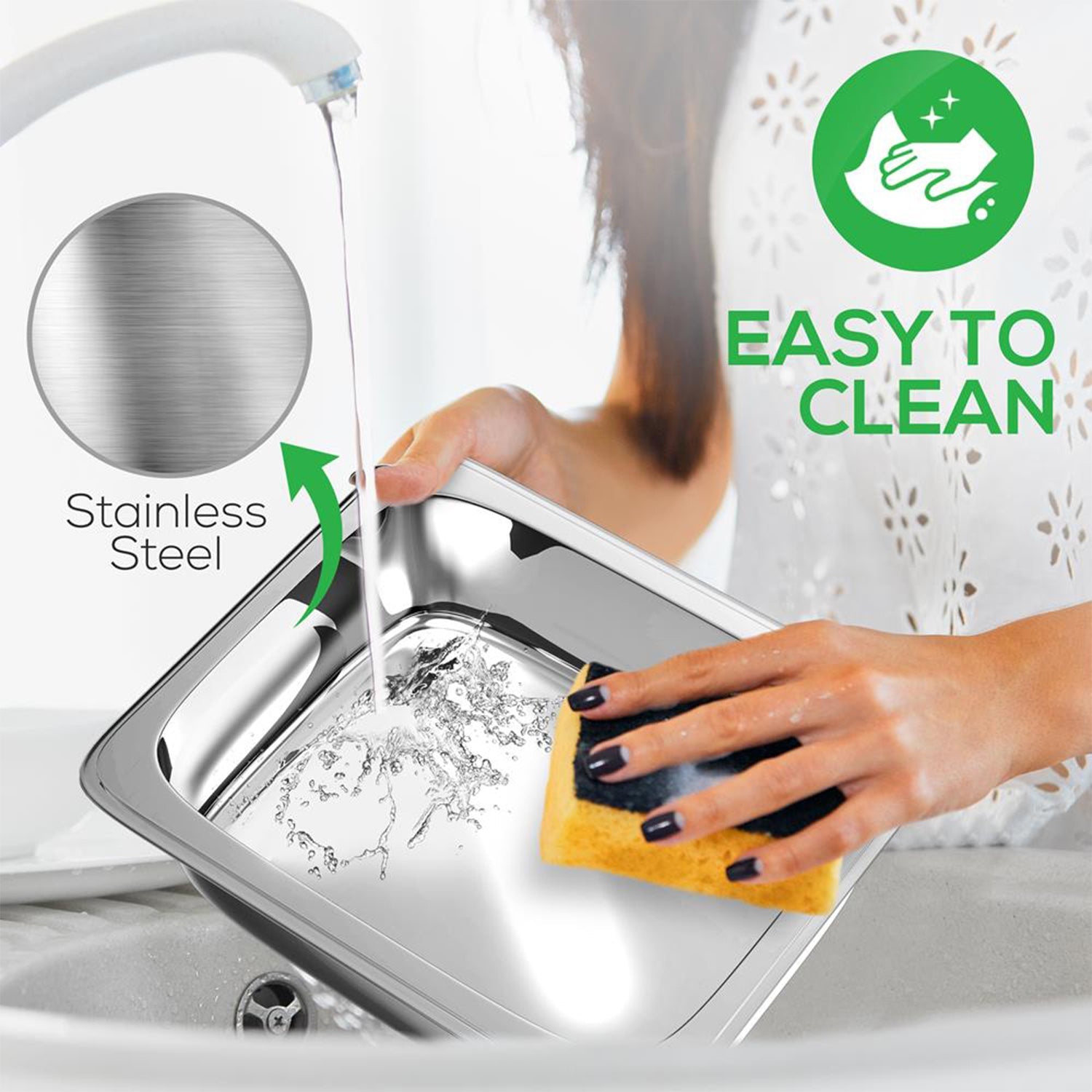 - Stainless steel construction is dishwasher safe and resists stains