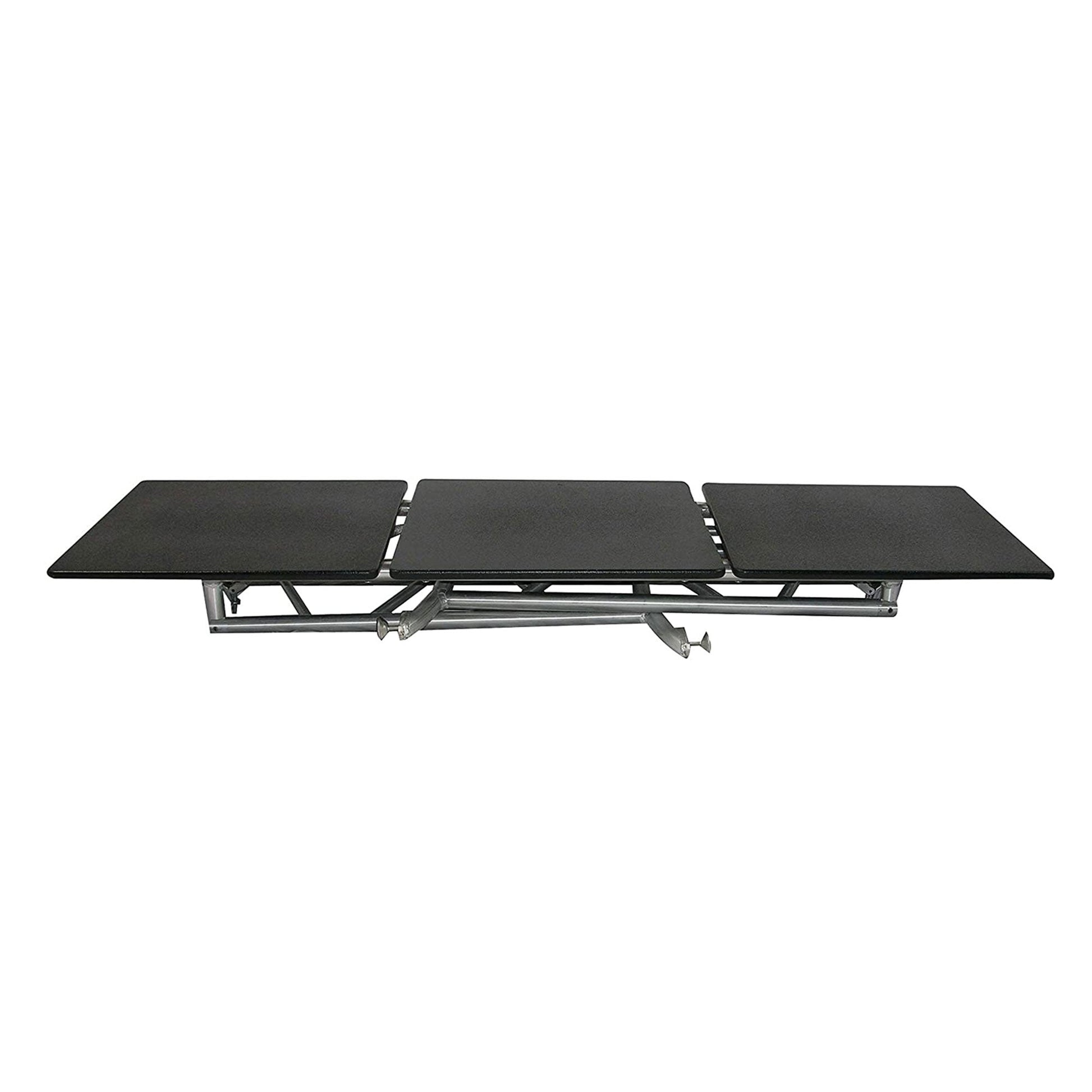 - Lightweight table features 3 18.50 x 19.50-inch work platforms; side platforms swivel for versatile setups