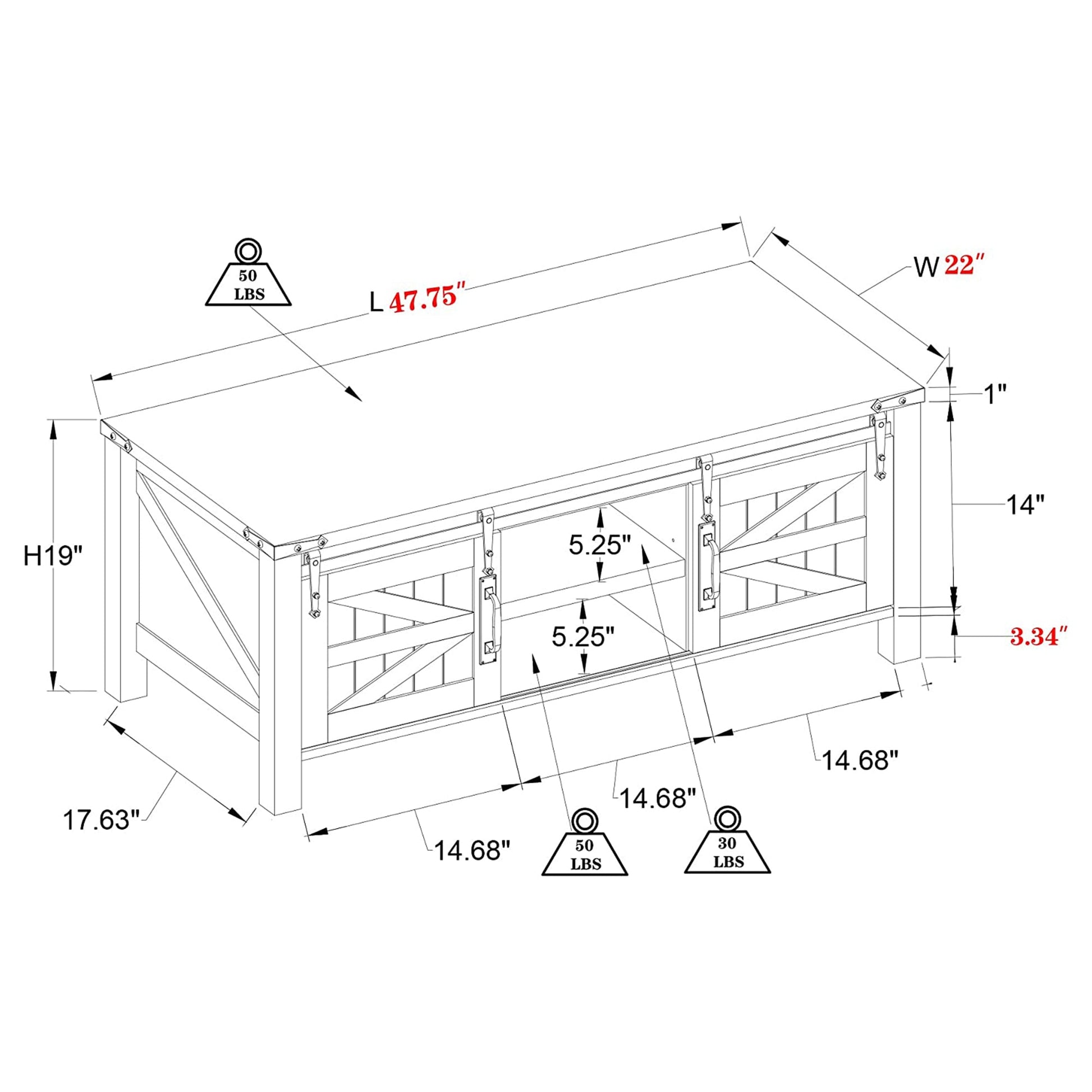 This versatile and rustic coffee table is the perfect addition to any room in your home that could use a little more surface space. Whether providing the perfect place for your coffee table books in the family room, displaying family photos and heirlooms in the den, or adding space to set a drink or snack in your office, you'll love the form and function this table provides. Featuring a light rustic oak finish and barn-style sliding doors on a stable metal track, this conversation piece adds a touch of old-world charm to your space.