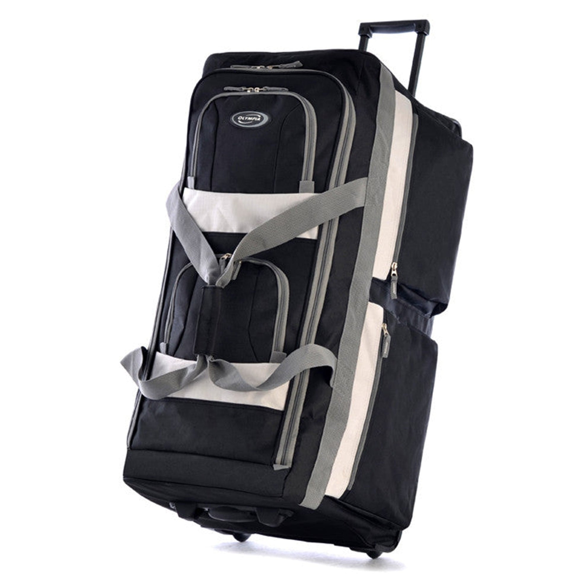 Keep all your belongings organized as you travel with the 33-Inch Rolling Duffel Bag with Rectractable Handle from Olympia.