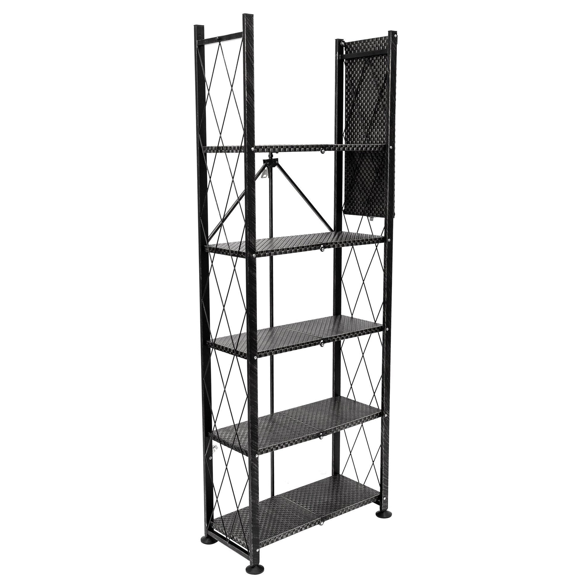 Origami 6 Tier Classic Stamped Steel Bookcase Organizer Storage Rack, Black