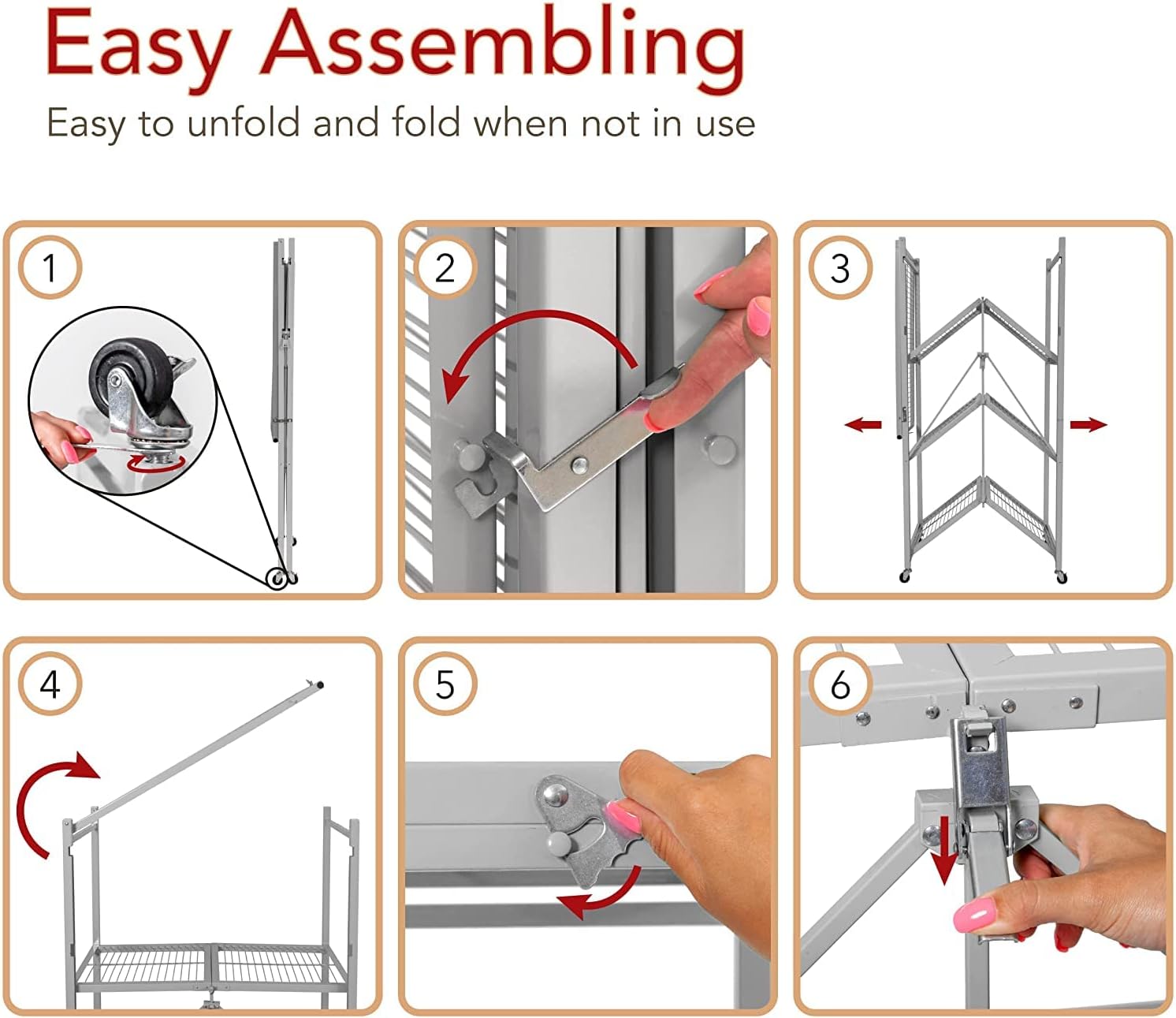 - Features 4 wheels for enhanced portability, effortlessly move the rack from room to room, indoors or outdoors, to meet your storage needs wherever they arise