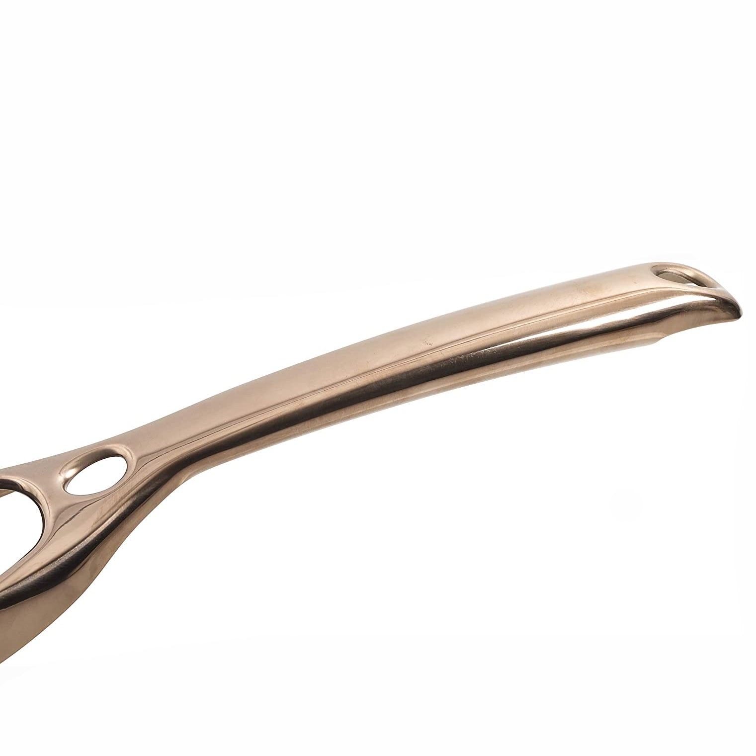 - Stainless steel handles in rose gold finish feature Y-shaped bases to dissipate heat, keeping the handles cool