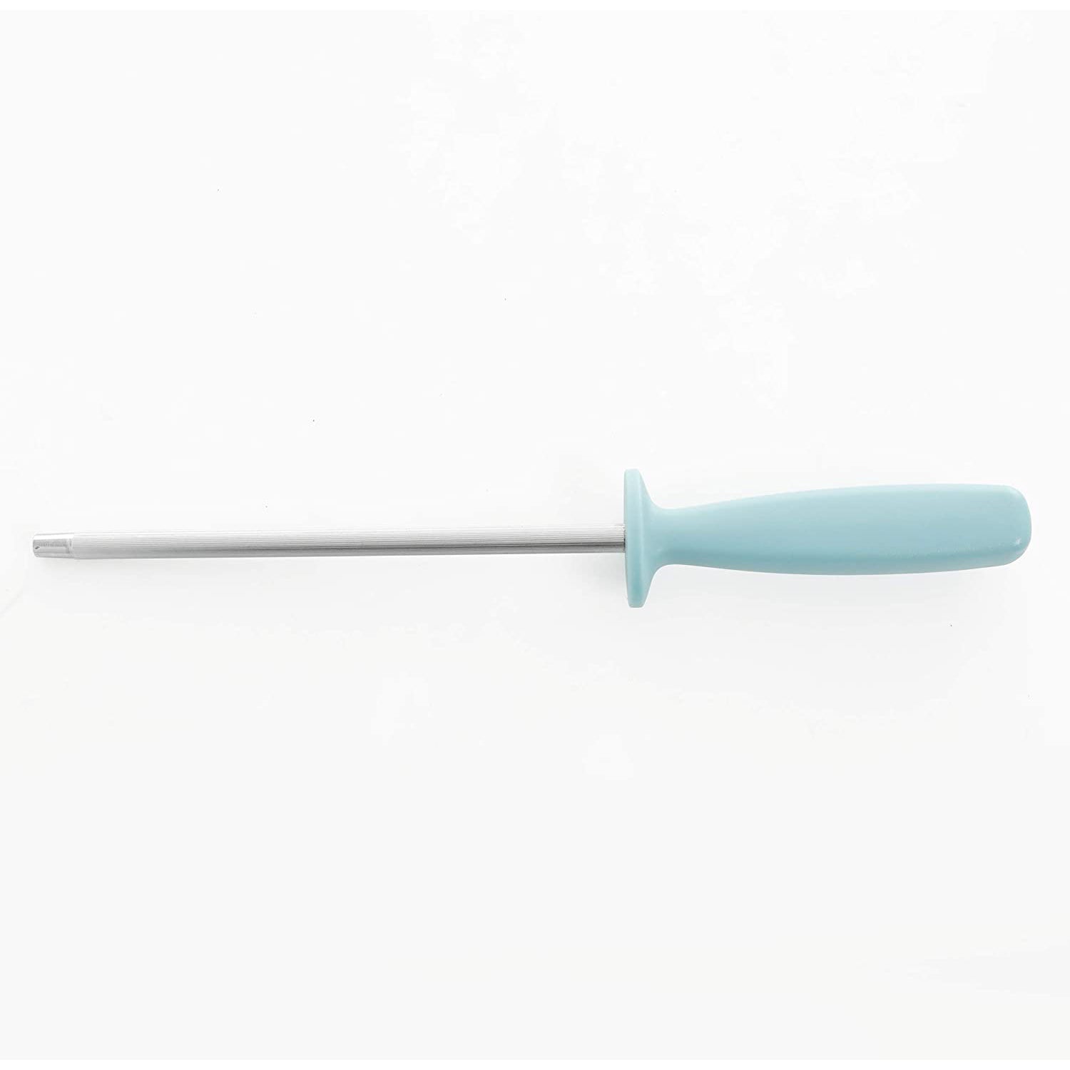 Comfortably chop through foods smoothly with the superior, serrated blades. If you catch a knife getting dull, use the included sharpener to bring the life back to your kitchen set. Cut, slice, and dice without a worry. Made with quality that will last, the stainless steel material will keep your knives in pristine condition. Made stain and rust-resistant, you can wash your cutting knives in the dishwasher or by hand.