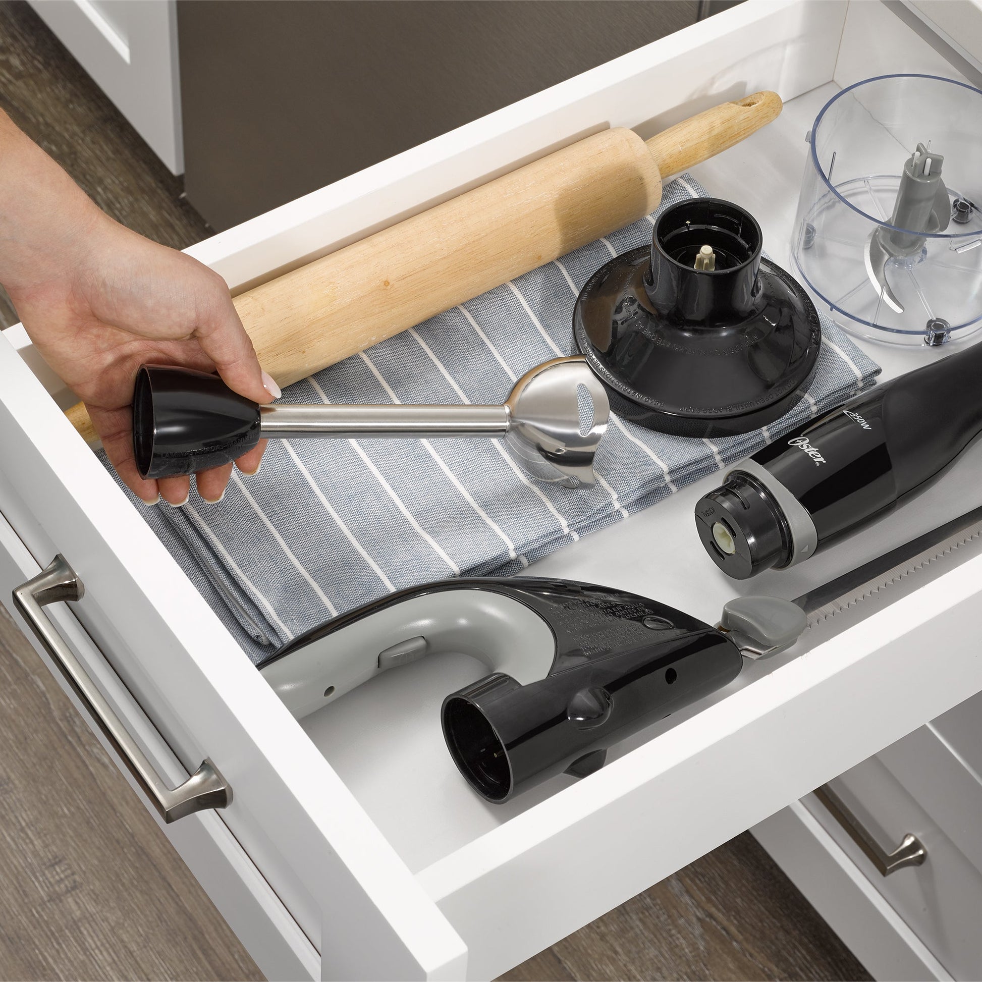 - Features 3 versatile attachments for all your food preparation needs including an immersion blender, electric knife, and 2-cup food chopper