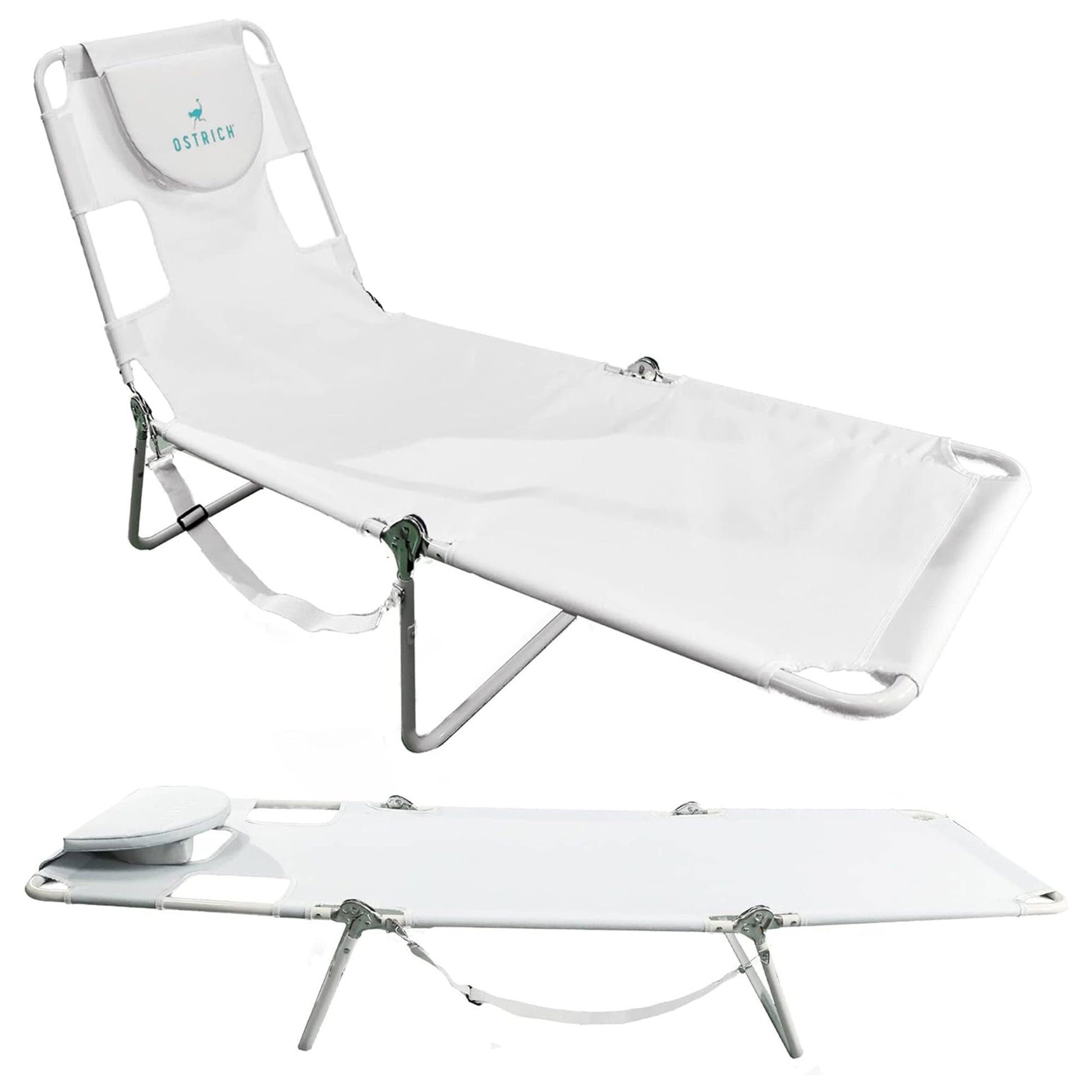 Ostrich Chaise Lounge Versatile Facedown Beach Camping Pool Tanning Chair, White