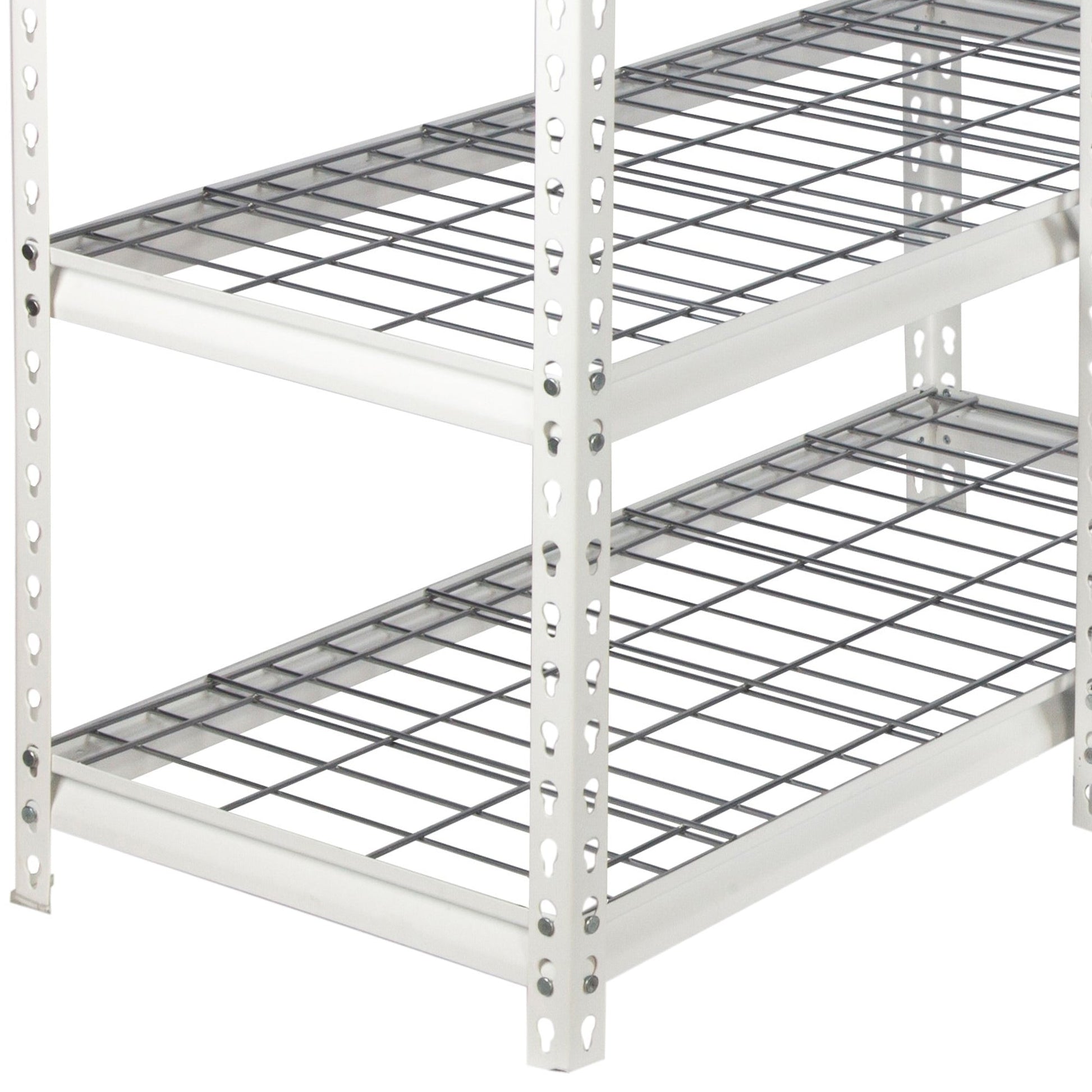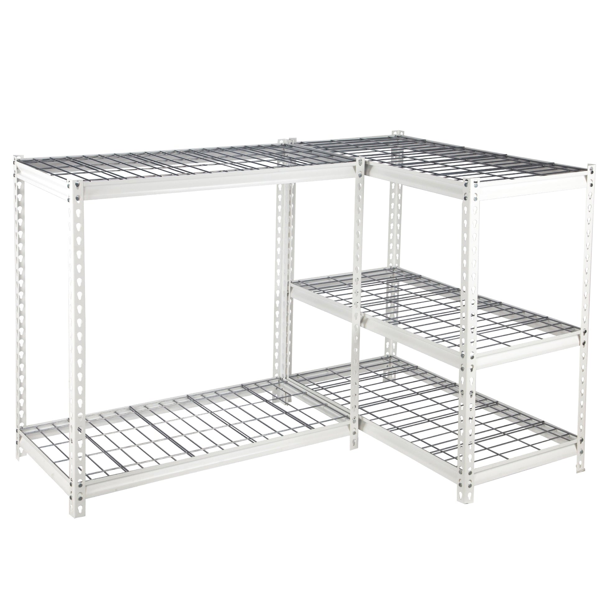 - Steel beams and shelves designed with wire decking for added durability