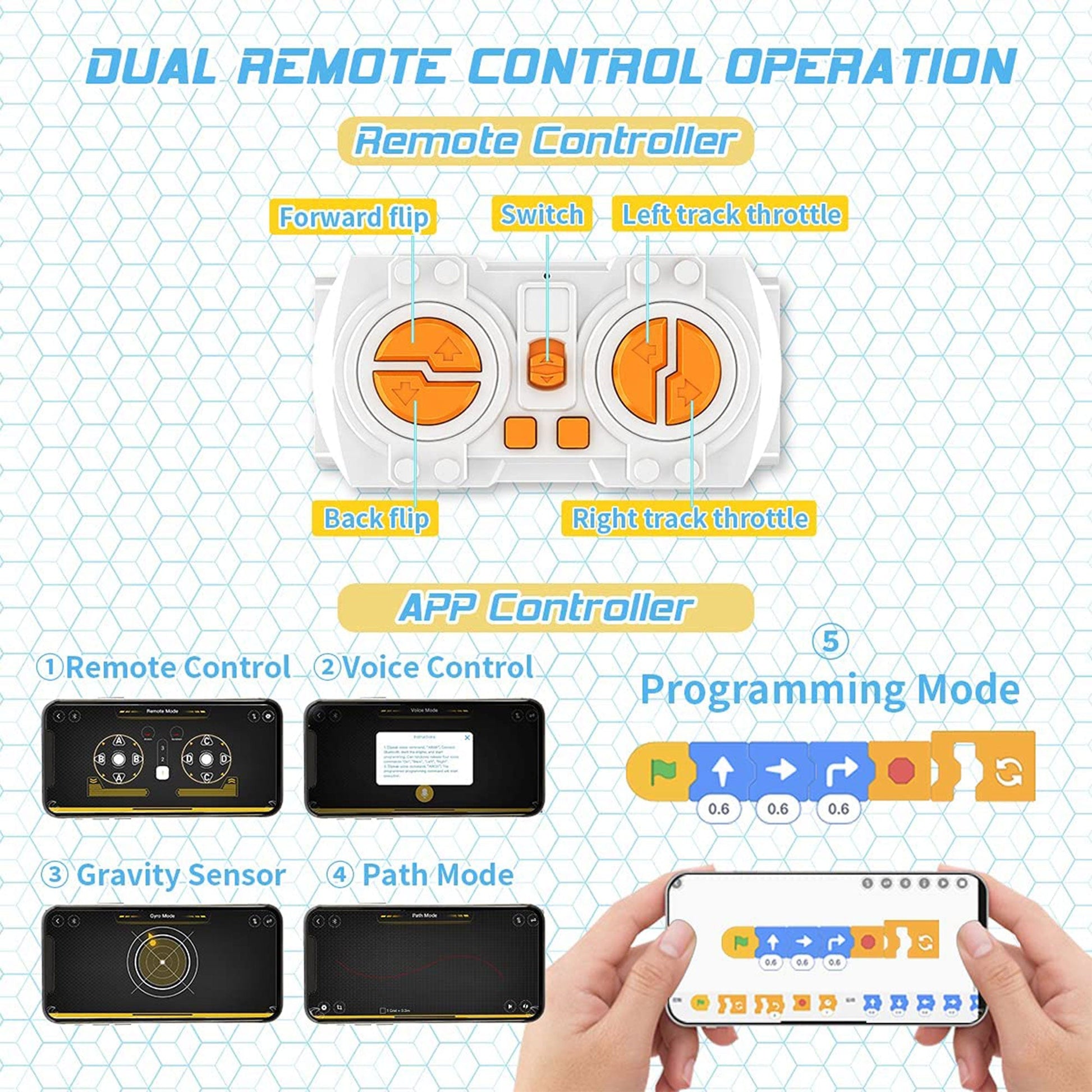 - 2-in-1 buildable robot lets you create an upright robot or a speedy racecar that you can program and control