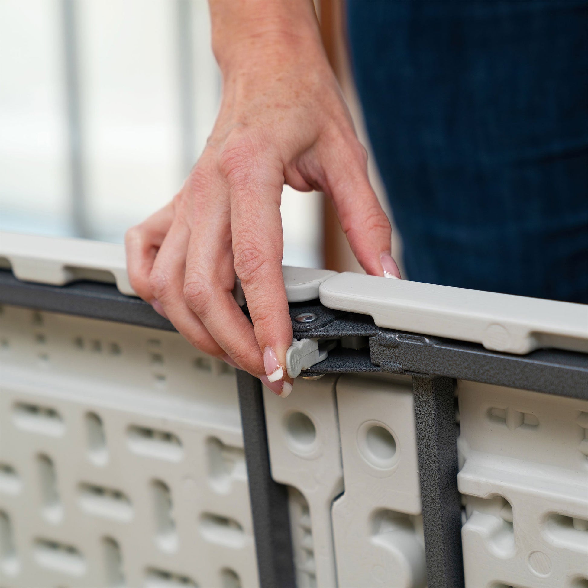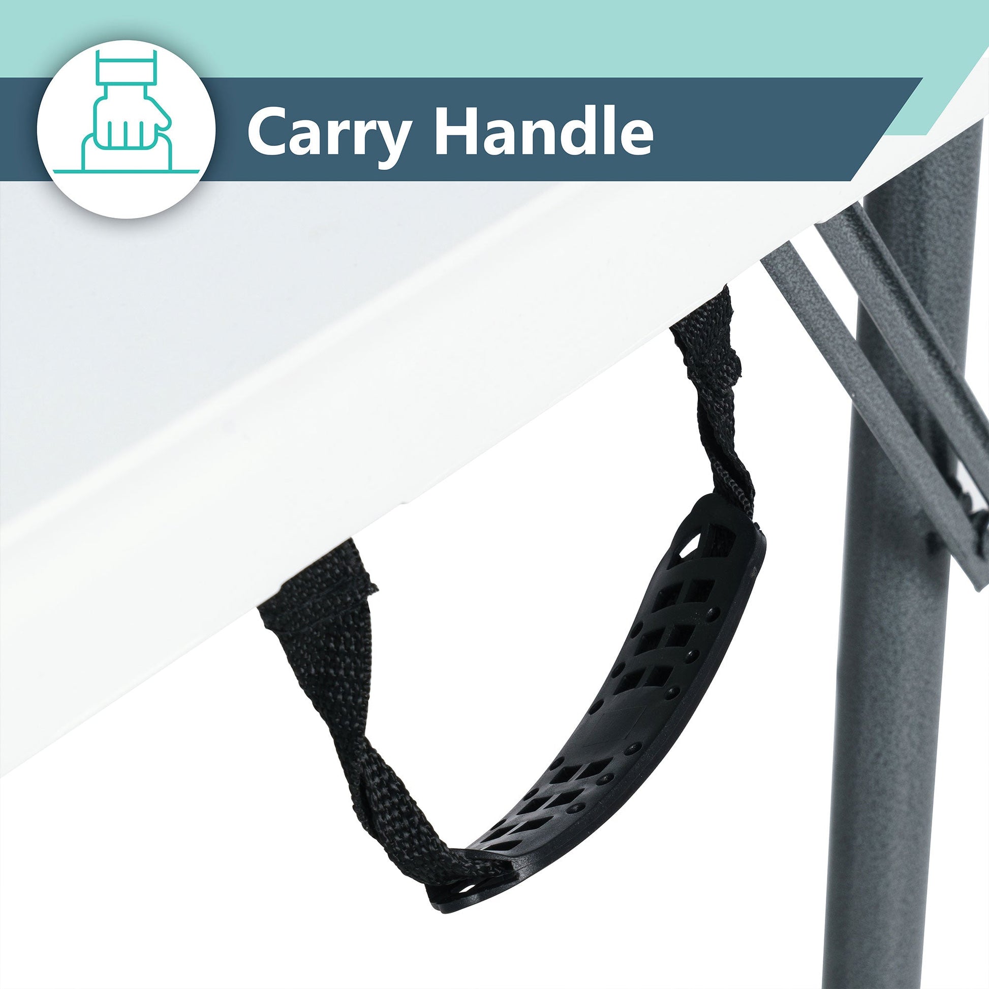 The table’s powder-coated steel frame guarantees support and stability, while its all-weather finish ensures easy cleaning and stain resistance. Foot caps provide extra protection for your floors, so you can confidently use it both indoors and outdoors. This table is designed to meet all your needs, whether you’re hosting a picnic, a party, or an impromptu gathering. It delivers a quick, spacious, and reliable surface every time, making it an essential addition to your home or event supplies.