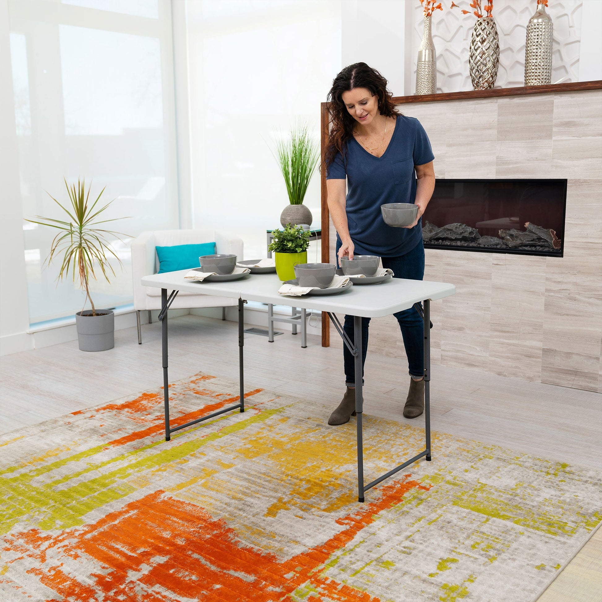 Upgrade your convenience and style with the Peakform 4-Foot Folding Banquet Table, the ultimate choice for anyone seeking a practical, portable, and enduring table solution. Enjoy the ideal blend of functionality and durability, making every occasion special. From casual family gatherings to formal events, this table adapts to your needs, providing a reliable surface that enhances your activities.