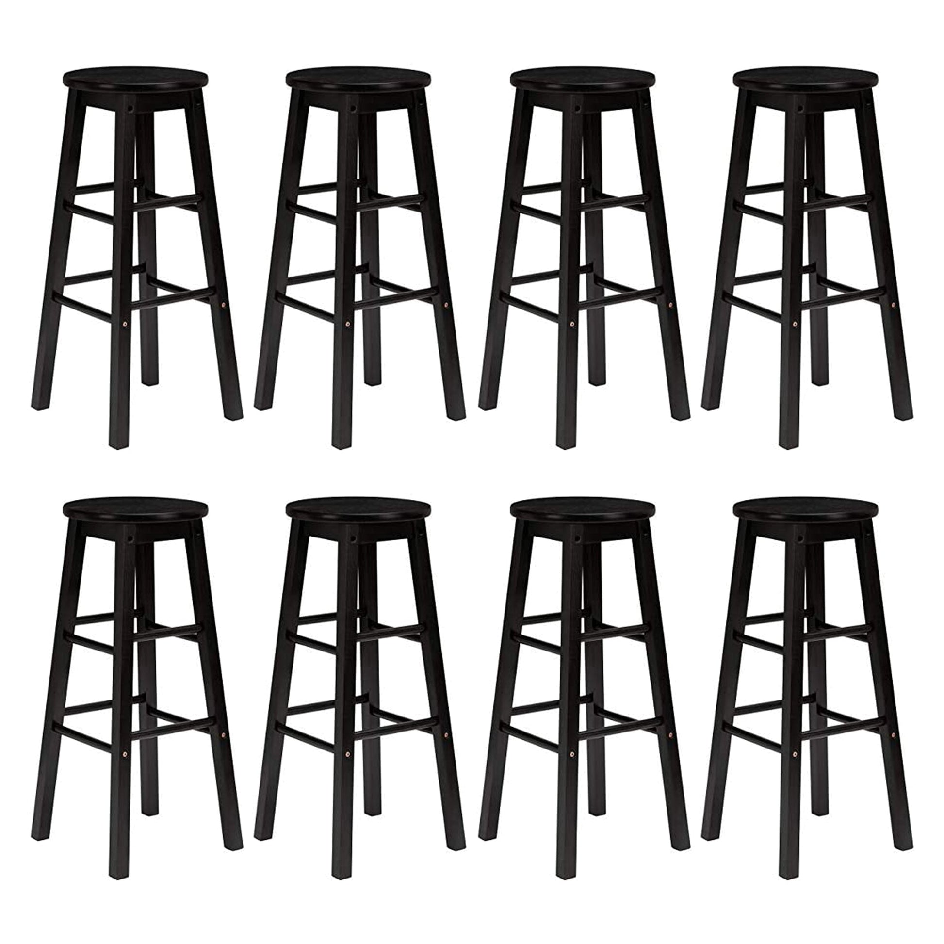 These stools are ideal for all occasions, whether paired with a small dining space that you already have, adding seating to your countertop, or casual entertaining space. Constructed from sturdy, durable wood, this set of 8 bar stools feature comfortable, round, backless seats that stand 24 inches high, with a classic and modern design that fits in with any existing decor. With 4 well-balanced, square legs, along with 8 built-in bars for your feet, each stool can withstand up to 225 pounds. Good for eating, working, entertaining a few guests, or just sitting around, these stools are a great addition to that new bar, counter height table, or working area. Light assembly is required before you can use these bar stools, with all required hardware included.
