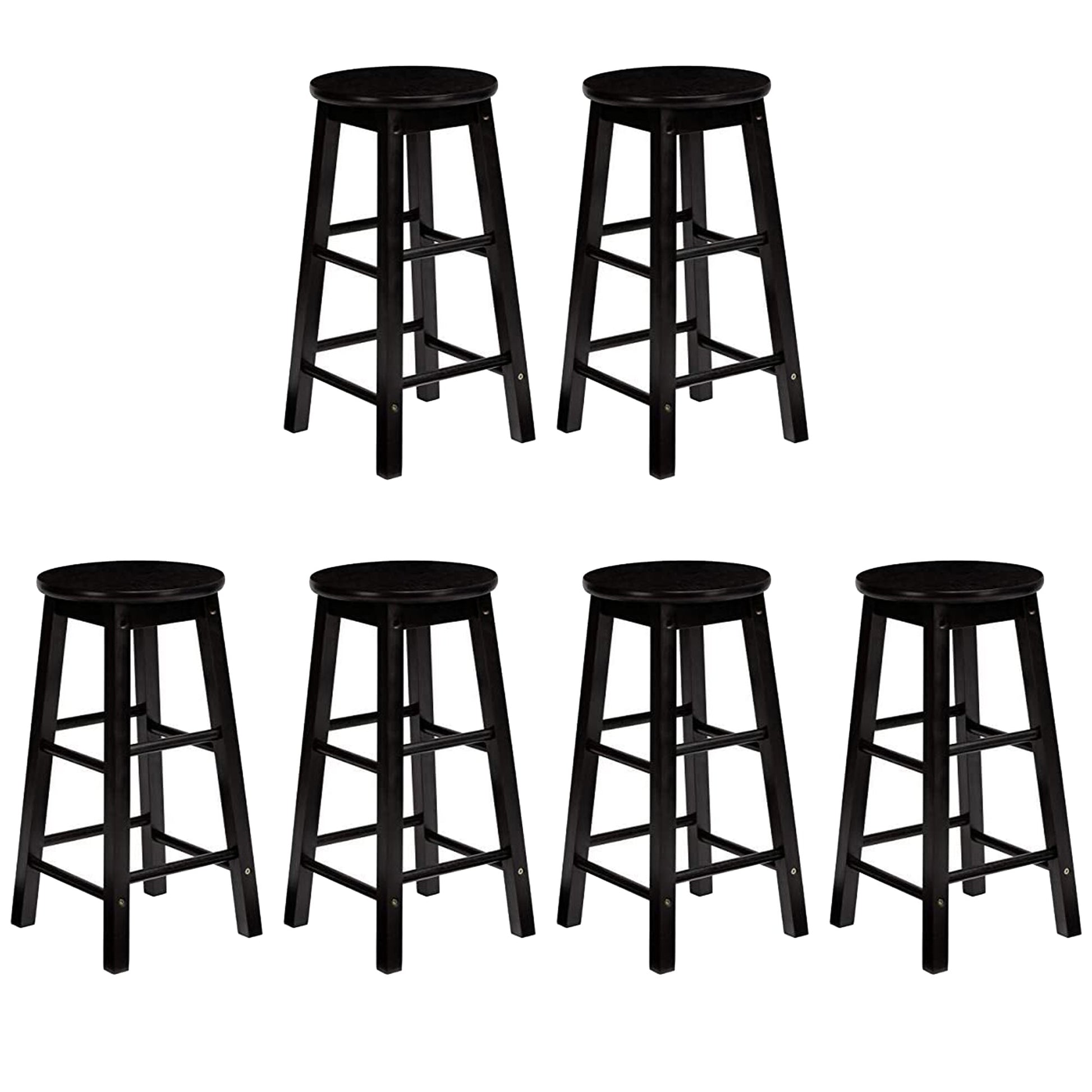 These stools are ideal for all occasions, whether paired with a small dining space that you already have, adding seating to your countertop, or casual entertaining space. Constructed from sturdy, durable wood, this set of 6 bar stools feature comfortable, round, backless seats that stand 29 inches high, with a classic and modern design that fits in with any existing decor. With 4 well-balanced, square legs, along with 8 built-in bars for your feet, each stool can withstand up to 225 pounds. Good for eating, working, entertaining a few guests, or just sitting around, these stools are a great addition to that new bar, counter height table, or working area. Light assembly is required before you can use these bar stools, with all required hardware included.