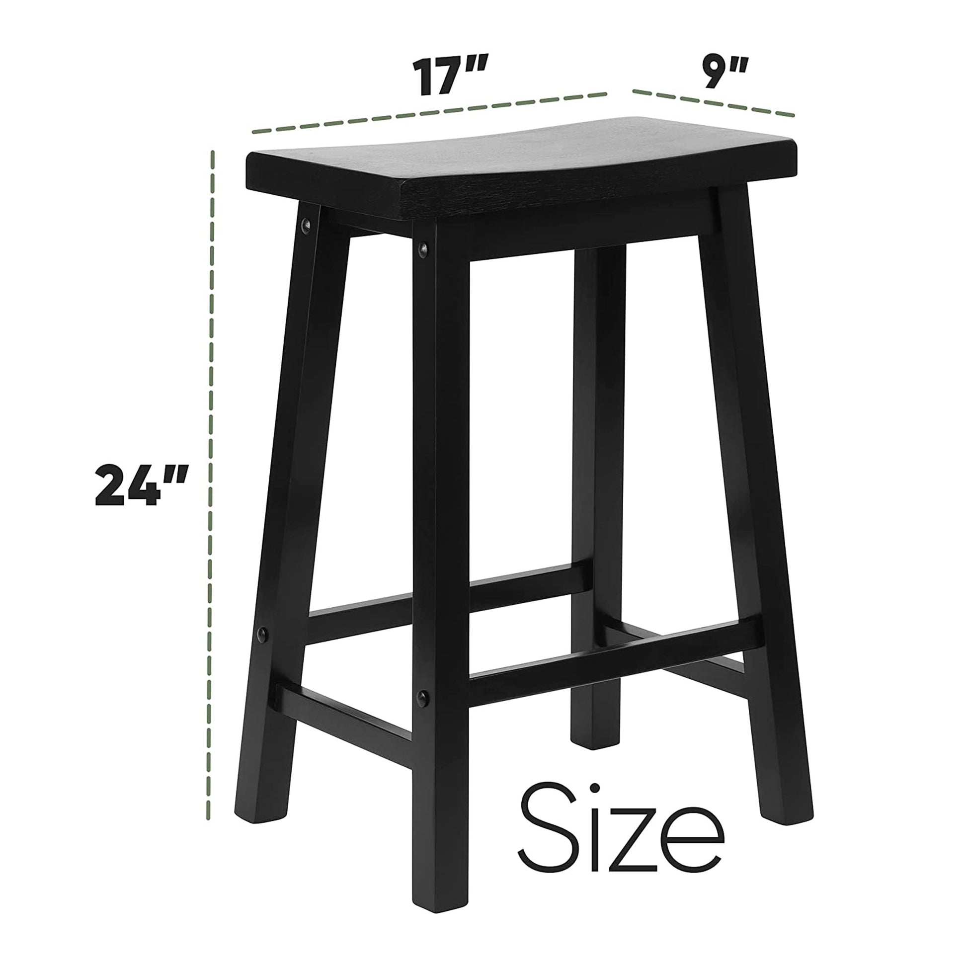 PJ Wood Classic Saddle Seat 24 Inch Kitchen Bar Counter Stool, Black (5 Pack)