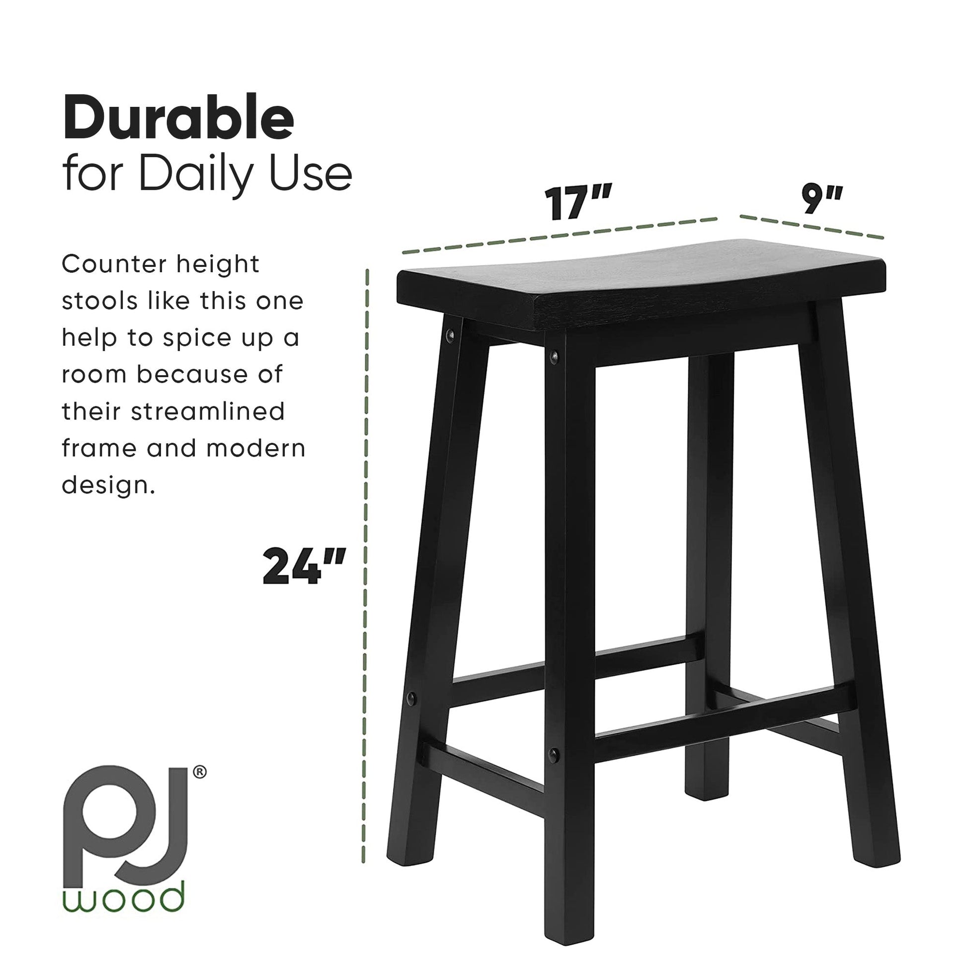 PJ Wood Classic Saddle-Seat 24" Tall Kitchen Counter Stools, Black, (Set of 2)
