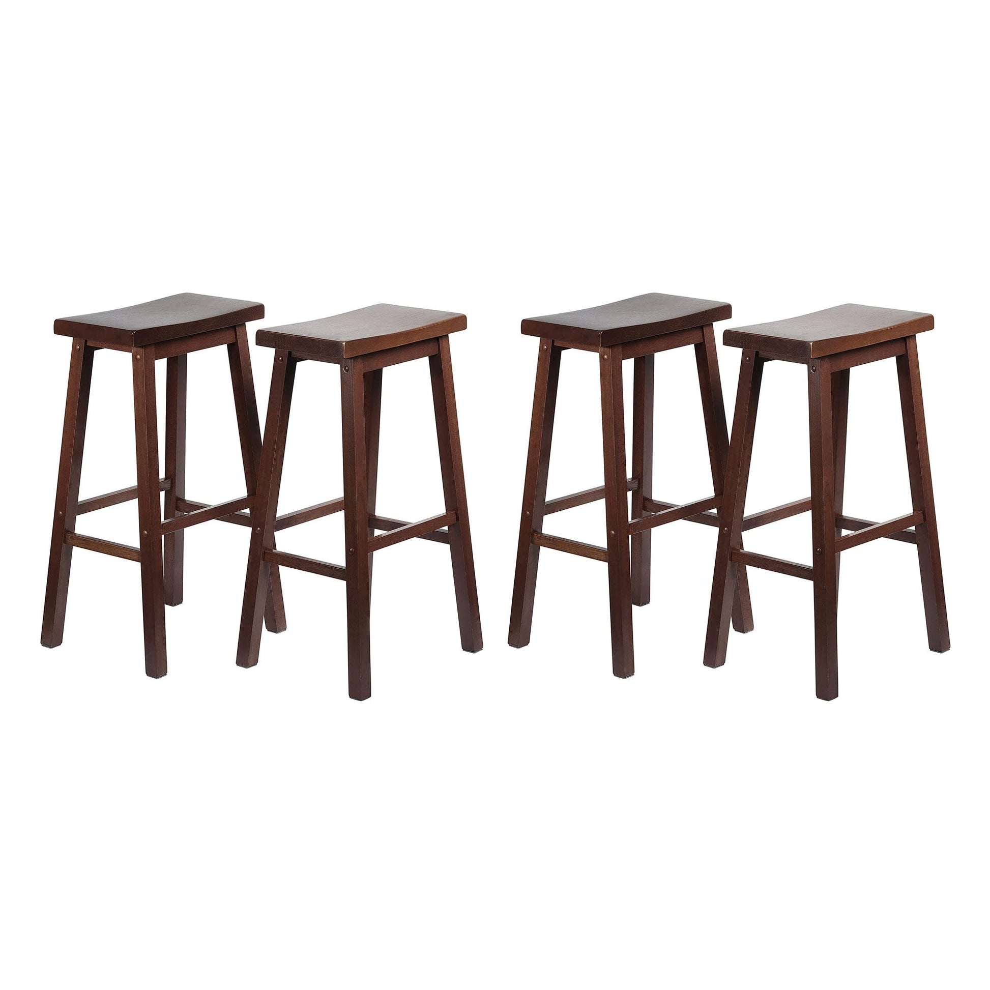 PJ Wood Classic Saddle Seat 29" Tall Kitchen Counter Stools, Walnut (Set of 4)