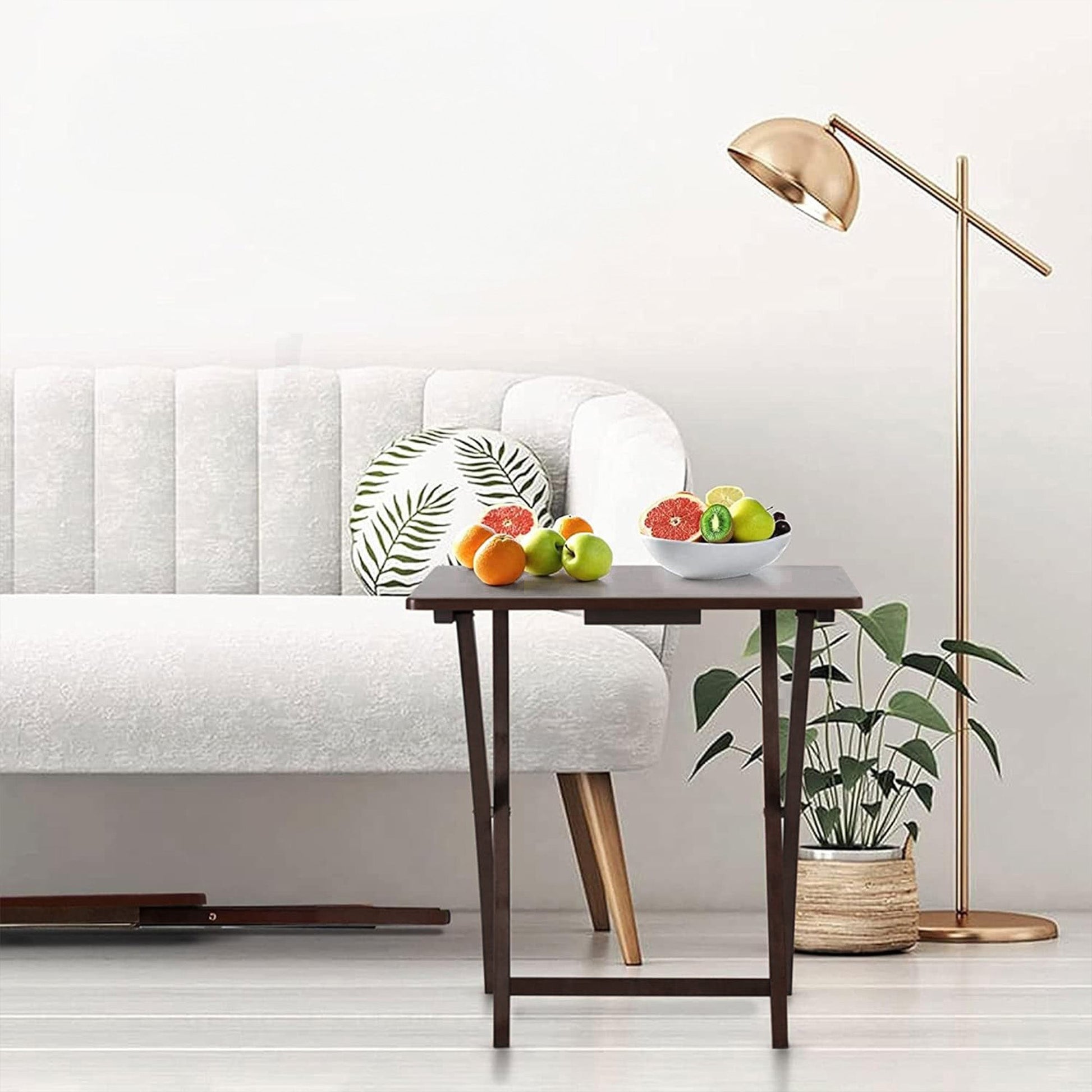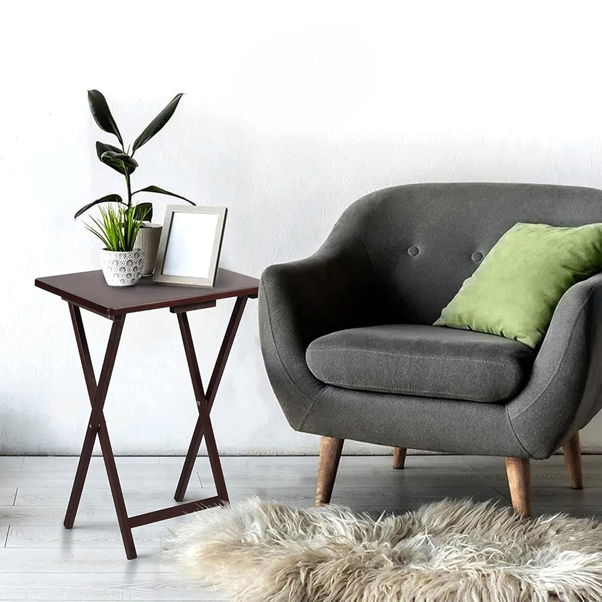 For those lazy nights on the couch, trust in the convenience of the 5-piece set of PJ Wood Folding TV Tray Tables.