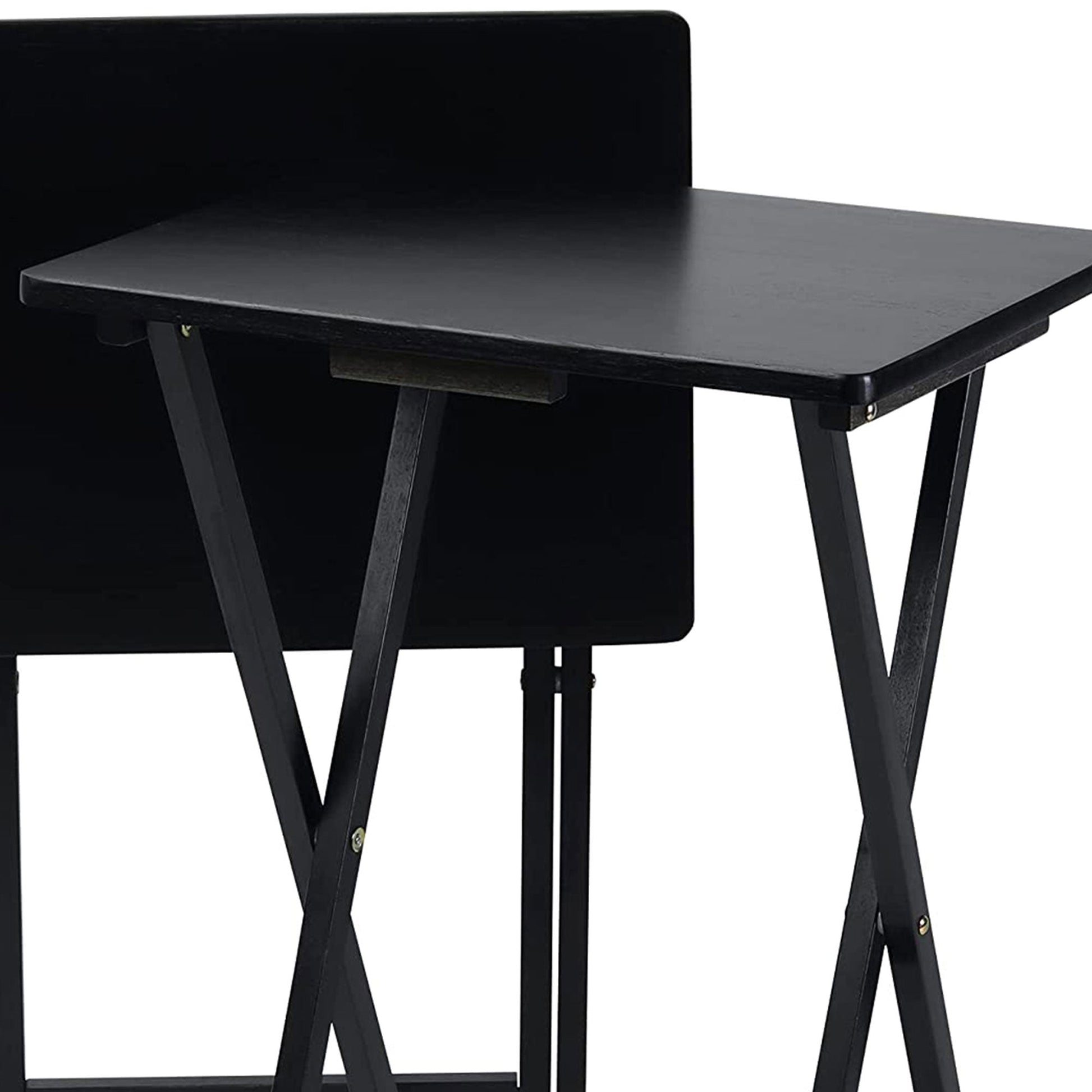 PJ Wood Portable Folding TV Snack Tray Table Desk Stand, Black (4 Piece Set)