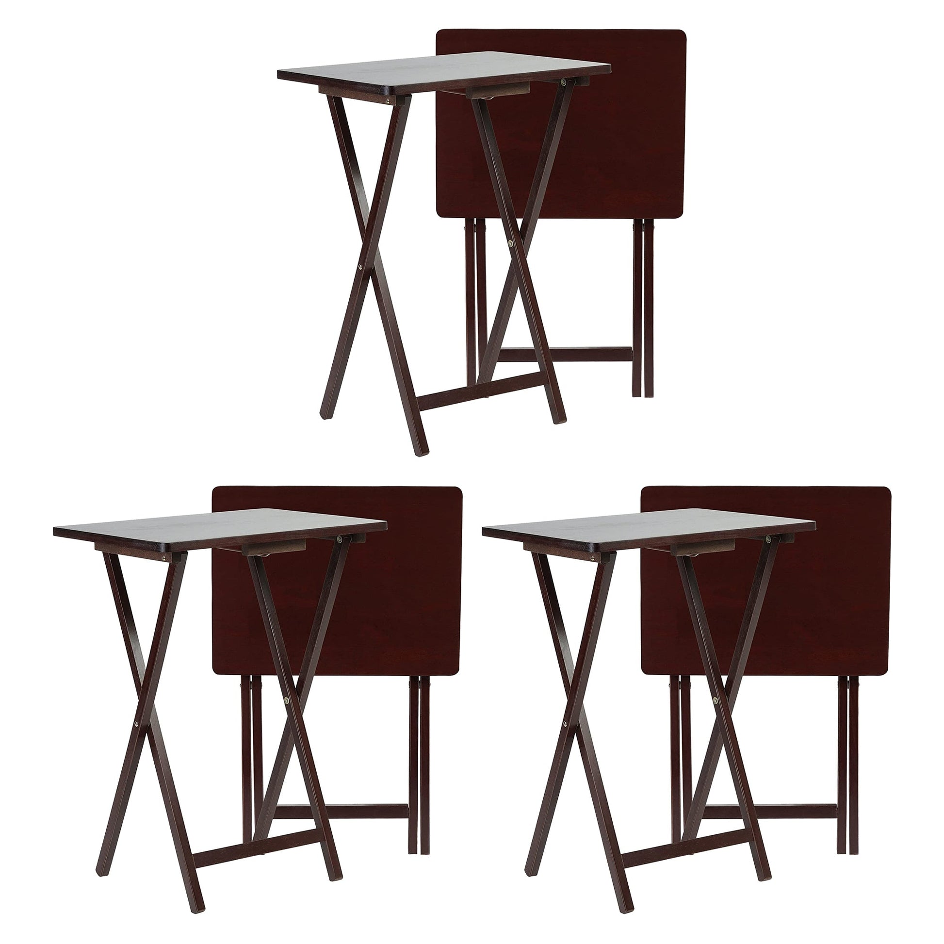 PJ Wood Portable Folding TV Snack Tray Table Desk Stand, Espresso (6 Piece Set)
