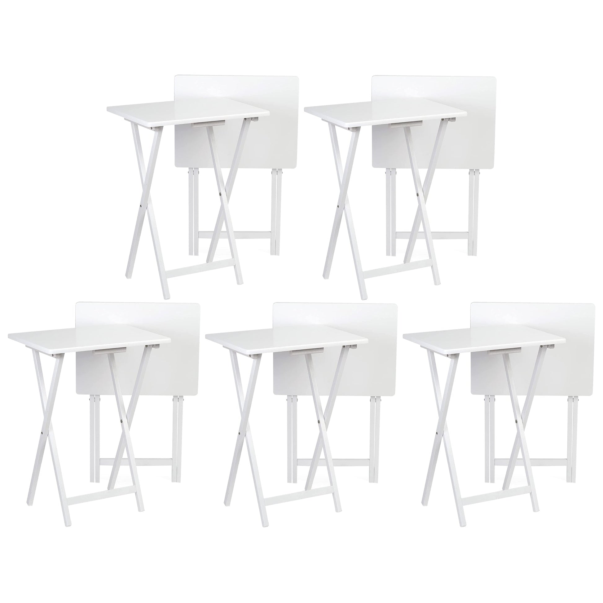 PJ Wood Portable Folding TV Snack Tray Table Desk Stand, White (10 Piece Set)