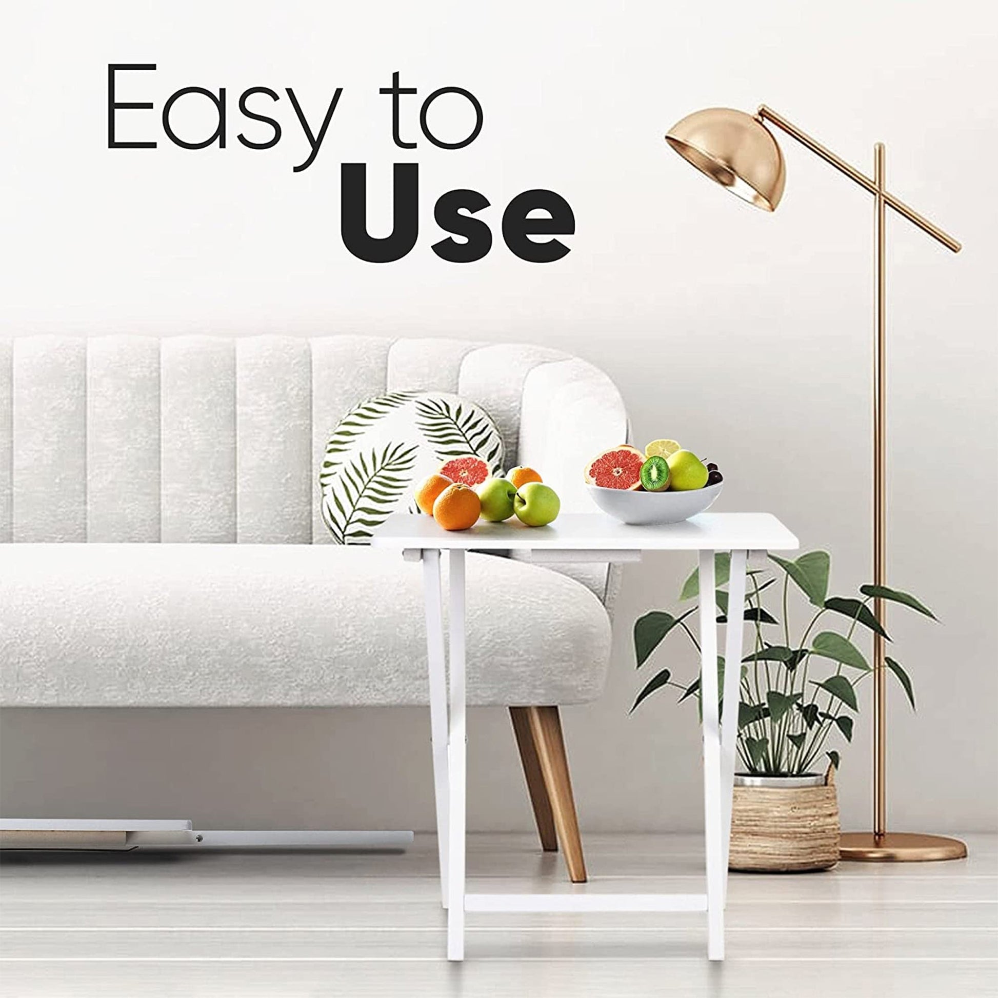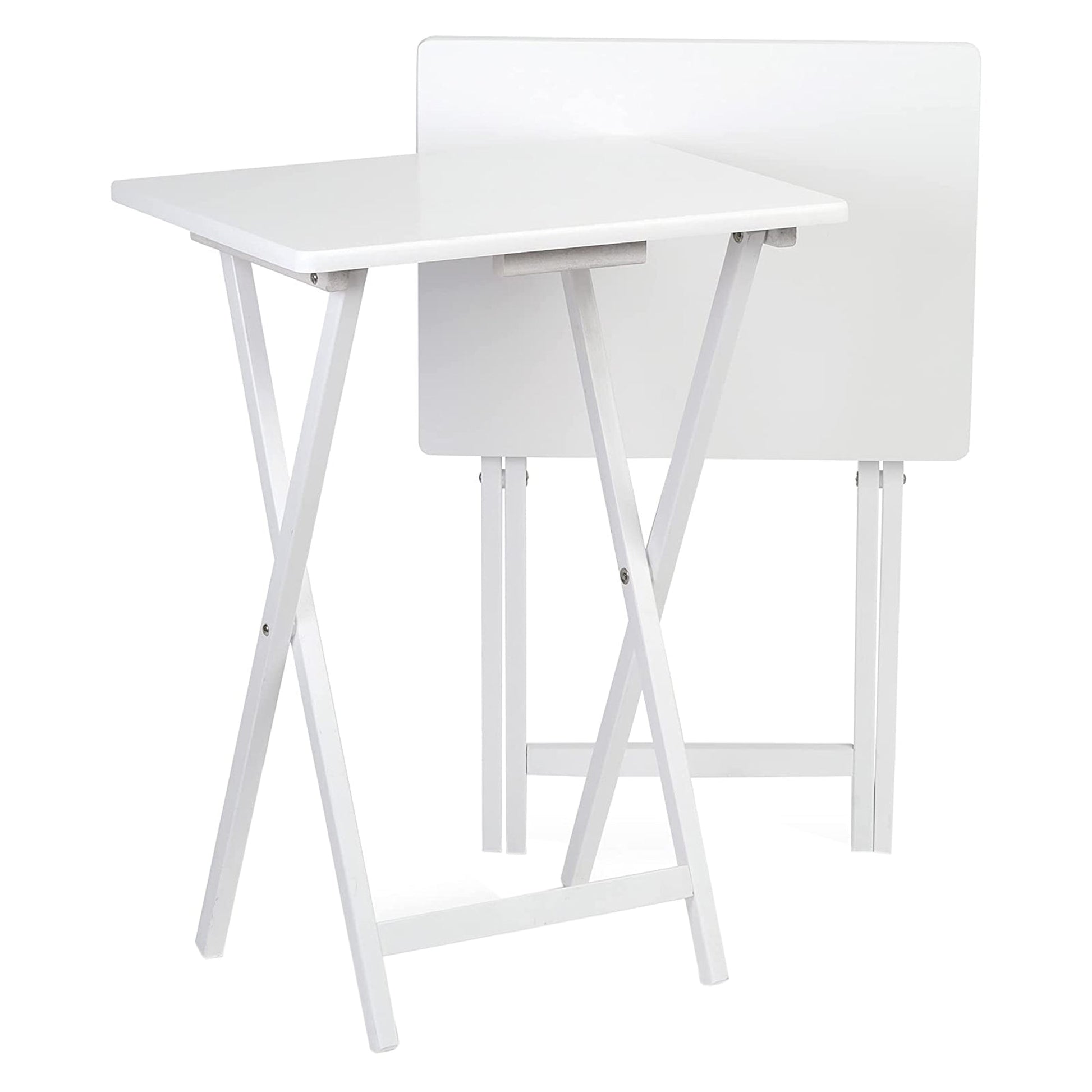 PJ Wood Portable Folding TV Snack Tray Table Desk Stand, White (6 Piece Set)