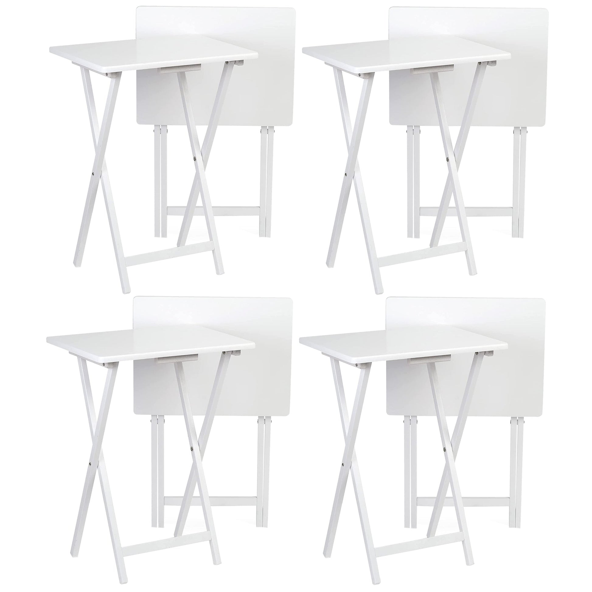 PJ Wood Portable Folding TV Snack Tray Table Desk Stand, White (8 Piece Set)