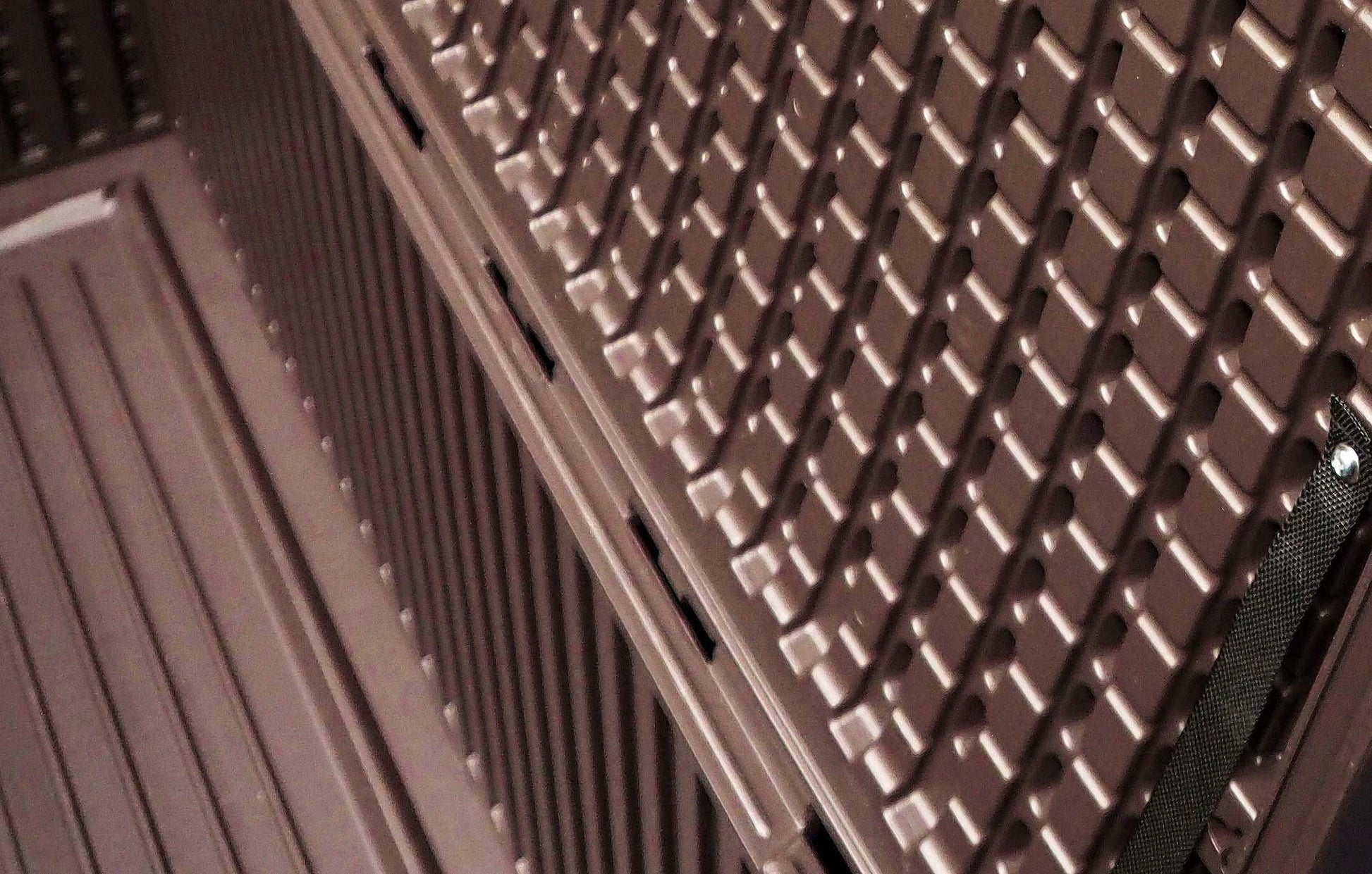 - Double-wall resin construction with a molded lid and lid retainer straps ensure ultimate security while it sits outside