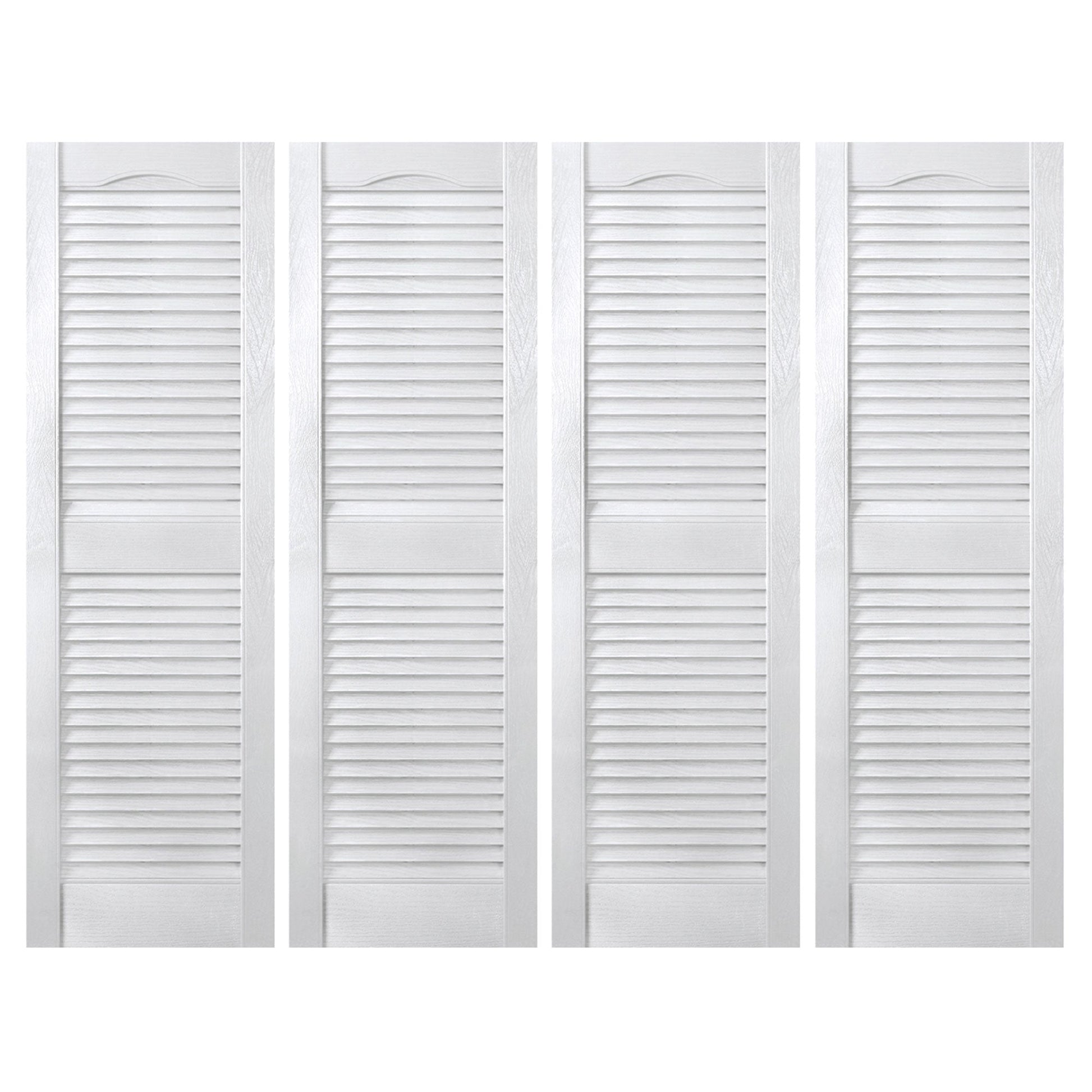 These plantation-styled shutters are constructed from heavy-duty, premium-grade polypropylene that will not peel, crack, or flake. Each louvered shutter features an elegant cathedral top design and has the look of genuine wood with a molded-in woodgrain texture. Easy installation on all kinds of surfaces including vinyl, wood, stucco, fiber cement, brick, stone, and masonry.