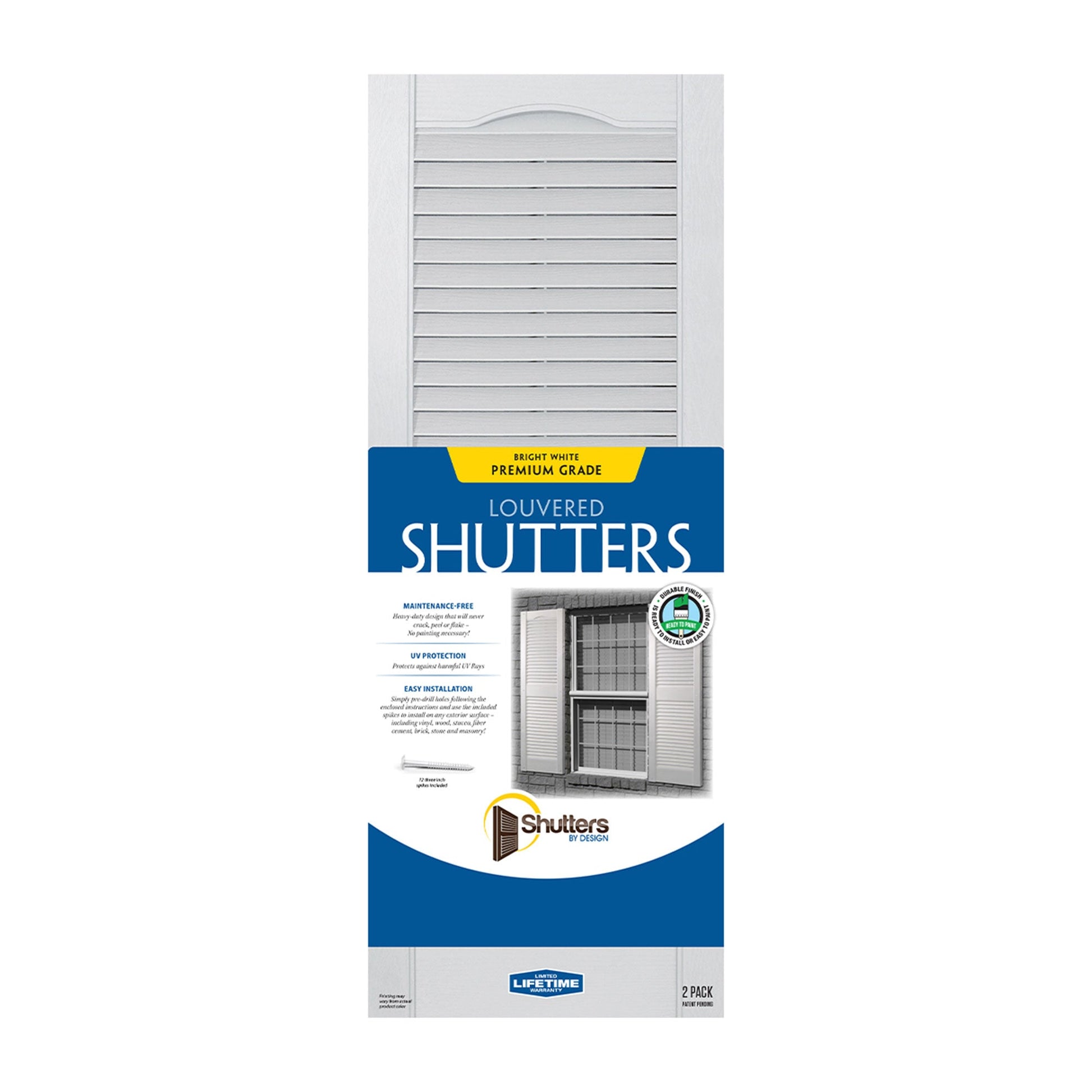 - Maintenance-free, ready to hang, no painting necessary, and color-matched shutter spikes included